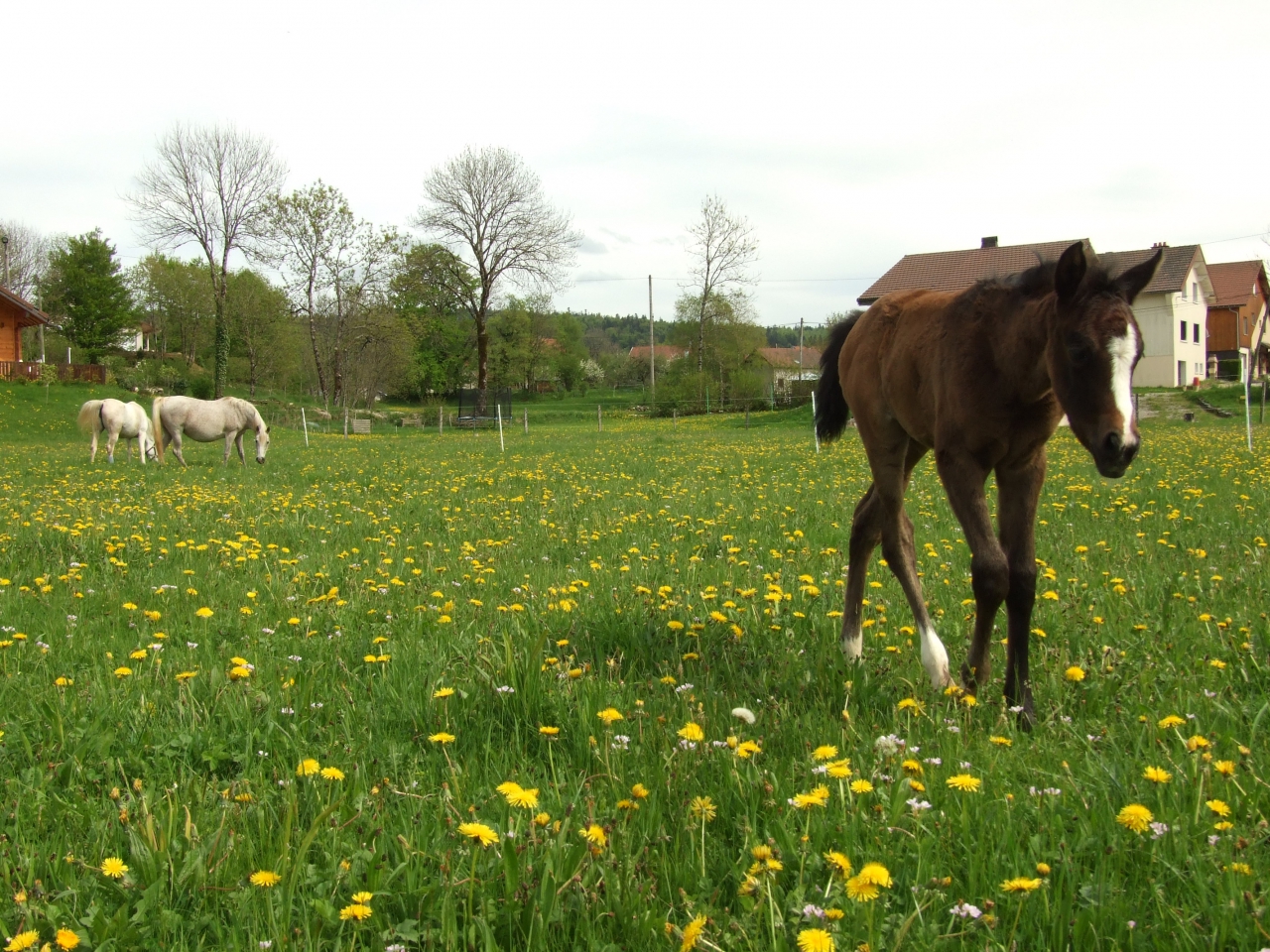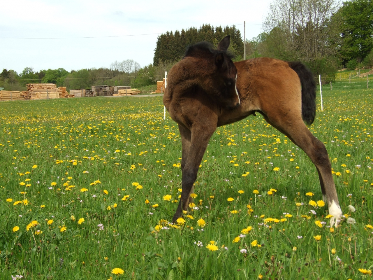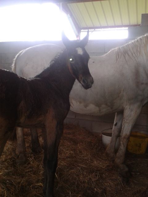 Evidemment dans mon dos, à 4h RAS de chez RAS (jument à la porte, comme d'hab!), à 7h, SURPRIIIIIIIIIIISE un poulain dans le box ... Bon jument délivrée, pouliche debout, elle a têté, plus qu'à surveiller le caca (j'attends que ma fille se réveille pour y retourner!).