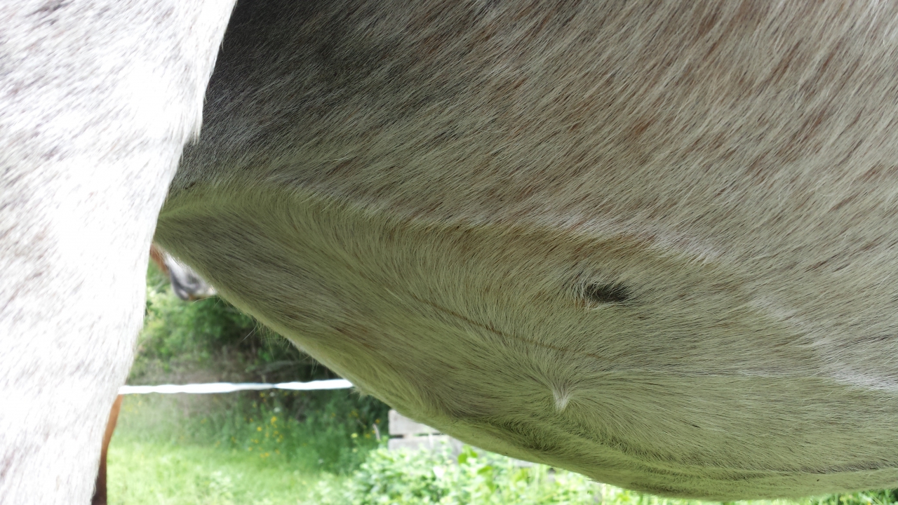 | Dire merci | Veine de lait gonflée oui, a pas peur c'est normal mes filles ça allait jusqu'au passage de sangle et ça a dégonflé un peu avant poulinage, regonflé, et redégonflé ! |