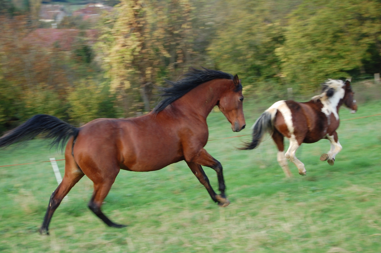 ici, tout va bien aussi, mais je n'ai pas pris de photo de mes tas de boue (j'ai décrassé à l'étrille américaine tout à l'heure, et 5 min après, elles se roulaient en y mettant du coeur dans un rond de terre ) Pour la surveillance, je ne suis pas encore fixée, mais j'ai peur qu'en l'isolant, ca la stresse davantage (elle est assez grégaire), donc je pense que je verrai sur le moment en fonction de sa réaction. et vu que c'est pour le 15 juin, je ne pense pas qu'il soit indispensable de l'enfermer dans l'abri (pas très adapté car sol non plat). Je pense plutot la mettre dans mon pré du milieu, eventuellement en rajoutant en rangée de ruban tout en bas pour etre sur que le poulain ne passe pas en dessous. |