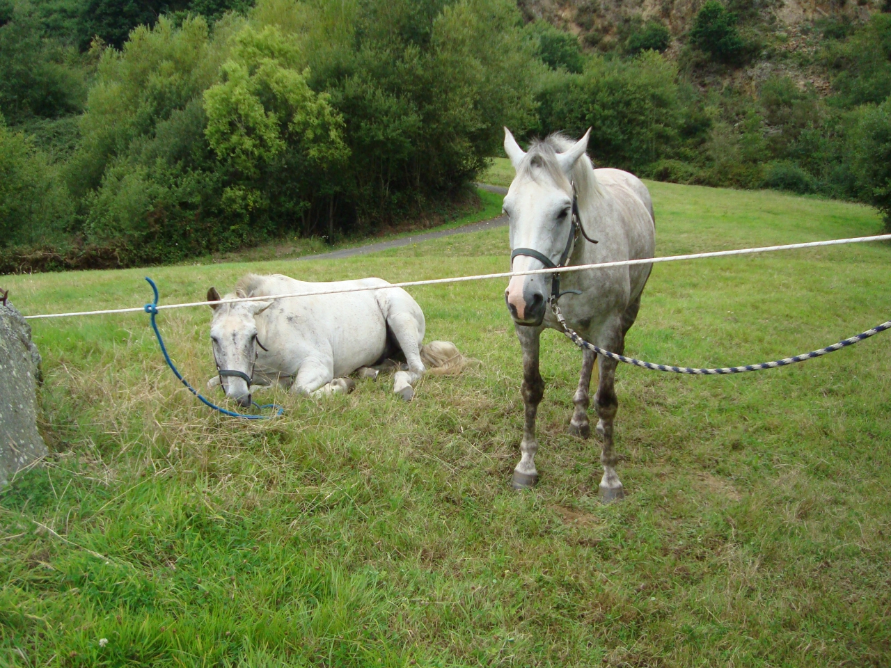 Déconnecté | Tiens coucou Colomba ! Mon vieux fafa c était un cas: sûrement traumatisé par son passe, il était devenu terriblement dangueureu sous la selle. Il se serai tue plutôt que d accepter un cavalier ..... Mais en mains il était super doux donc il a fini en tondeuse à gazon. ( un peu défectueuse sur la fin vu qu'il avait plus de dents le pauvre ) Et pour celle au grande balazane c est Troudy hoy ! Une jument qu'on a eu 2 ans mais qu'on a échangée contre le cob car elle était très delicate . c était une jument qu'il fallait sortir tous les jours et pas comme les notre que l'on peut laisser 3 mois en pâtures avant de remonter dessus ...... Le marchand la remis en vente sur le bon coin d'ailleurs . Une très belle jument respectueuse mais chaud comme la braise ^^^ |