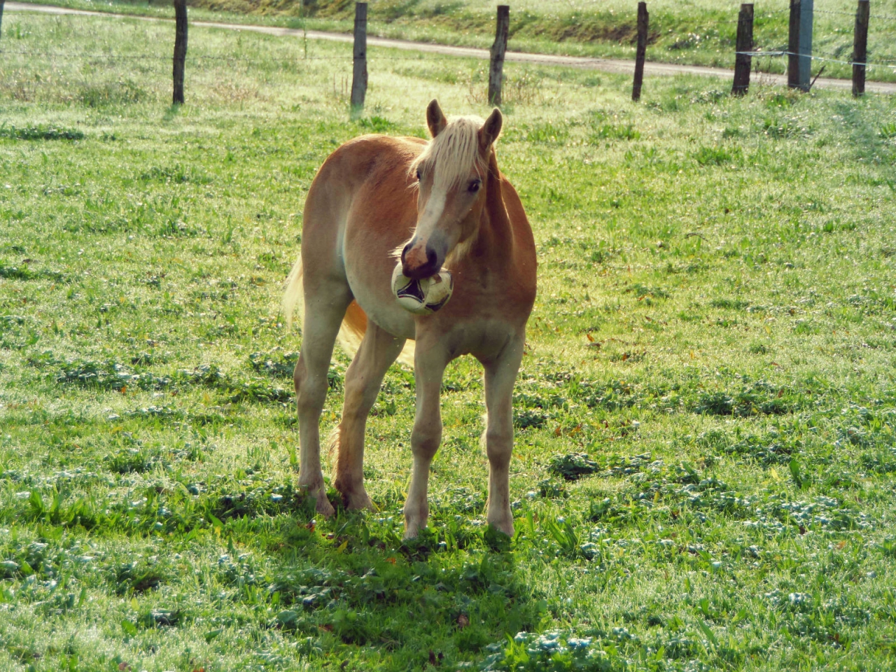 | Dire merci | Très joli poney ! C'est un haflinger je suppose ? Quel chance d'avoir son loulou chez soi Plein de bonheur à vous deux ! |