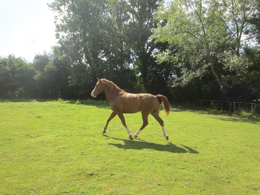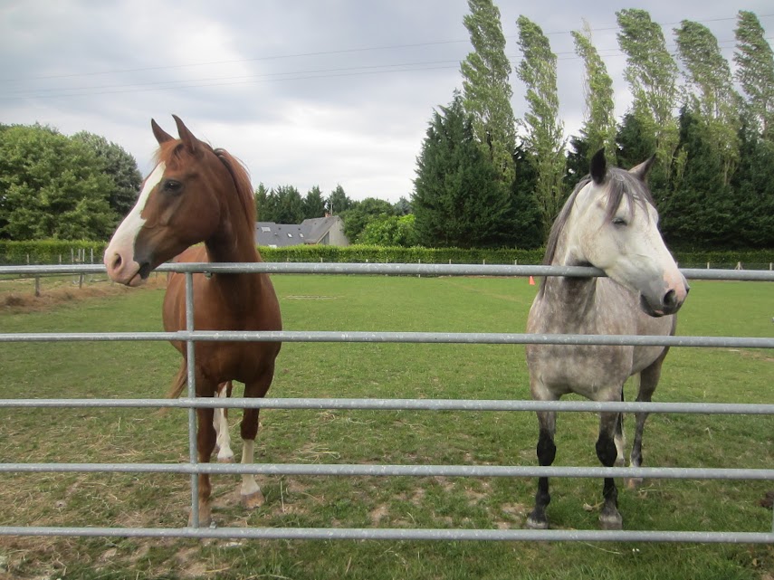 | Dire merci | Qui est le boulet qui a perdu tout ce qu'elle avait écrit ?? C'est moi ![]() Ce matin Paddy a déboulé au trot vers moi depuis le fond du pré comme si je venais le sauver. Il est très stressé, je sens que son caractère stressé et mal dans ses baskets est exacerbé par le changement d'environnement. J'ai voulu tenter la balade mais c'est trop tôt, il est encore trop tendu le pauvre. Quand je l'ai monté il m'a fait des piaffés, croupades comme s'il allait se faire agresser. J'ai bien senti que ce n'était pas du cinéma donc je suis descendue et on a fait une sortie en main (qui qui s'est tapé 5 km à pieds avec une pluie battante ? ). Au retour il s'était calé dans le boulot, ça m'a fait du bien de le voir cool.Il s'est un peu fait bouffer l'encolure et avait un pet au jarret. Je ne sais pas trop lequel est coupable car Kiki est dominant semble t-il (puisque Paddy le fuit à son arrivée) mais je ne l'ai pas vu tenter de le chiquer ni quoi que ce soit du genre. Boudinette couche les oreilles et montre le cul (ou les dents ) mais ça s’arrête là car si Paddy insiste elle s'en va, Paddy a le dessus sur elle. Elle est aussi courageuse et téméraire que son humaine Paddy est - je pense - stressé de ne pas encore avoir fait sa place (donc de ne pas encore pouvoir se fier au groupe) mais il n'est pas martyrisé ni martyrisant. C'est rassurant même si ça ne l'aide pas à se détendre. |