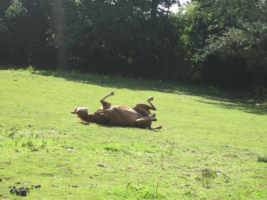 | Dire merci | Bon bah ça y est Paddychou est arrivé !!! Hier après le boulot je décolle chez mes zozo pour aller chercher mon gros poney. J'arrive 1h plus tard donc et je retrouve mes zigotos Je charge le matos, et j'attrape paddy tranquillou (et là je me dis que j'ai bien fait de bosser là dessus car j'étais toute seule donc pas moyen de me faire aider en cas de soucis). Direct une douche de butox (chez nous il y a la blinde de tiques donc sur 2 ou 3 jours ca va mais sur 1 mois je traite, je m'en voudrais trop qu'il choppe une sal**** du genre lyme) On couvre pour qu'il sèche en route et on protège (c'est fou les mille précautions supplémentaires qu'on prends quand c'est pas son cheval ![]() Direct on embarque, loulou monte comme une fleur. A chaque fois je doute de la façon dont il va embarquer parce qu'on me dit qu'il est parfois ch*** alors que je l'embarque toujours seule sans soucis... Le trajet se passe comme sur des roulettes, Paddy mange, regarde par la fenêtre, mange, regarde... Il est stressé mon loulou mais il est vraiment mignon On arrive à la maison, je décharge, lui fais faire le tour de son paddock. L'abri est étroit, je sens qu'il n'ira pas Bon bah comme les deux débiles ne daignent pas venir le voir je les appelle. La rencontre se fait tranquillou à travers la clôture, 3 ou 4 sniffages et voilà. Pas de couinement, pas de trot, rien... ![]() 5 minutes plus tard Paddy se roule déjà pendant que kiki l'attend derrière le fil et que Boudin s'est déjà désintéressée, normal quoi Je sens qui kiki ne va pas le lâcher Hier soir nous avons eu des orages. Je pense à Paddy qui n'est pas chez lui, il doit stresser. Ce matin je vais au pré, je reçois un appel donc je reste dans la voiture car il y a du vent. Paddy n'a pas du entrer dans l'abri, il est cul au vent dans l'angle du paddock ou il n'y a rien à manger mais depuis lequel il voit tout Je sens qu'il est stressé mon pauvre loulou ![]() Je sors de la voiture et j'entre en l'appelant, il se jette sur moi en hennissant C'est un truc de dingue ce que ça m'a fait, lui si peu expressif était tellement stressé qu'il m'a montré que j'étais sa référente, comme si c'était un soulagement de me voir Il me suit partout comme un petit chien, je sens que ça va pas, il est stressé d’être seul dans ce nouvel endroit en plein vent avec un abri tout petit donc sur concertation avec ma colloc on décide de l'intégrer au pré. De toute façon les autres sont désintéressés. Ils sont tellement désintéressés qu'ils ne viennent même pas le voir alors qu'ils l'ont vu arriver, c'est lui qui vient à eux, tranquille, au pas Enfin ils se rencontrent. Paddy va vers Boudin, mais kiki se met entre eux. Kiki a décidé de faire son relou comme à son habitude quand il y a un nouveau Il fait le pot de colle avec Paddy et Boudin n'a pas le droit d'aller le voir. Heureusement il est juste chiant mais pas méchant donc il se passe rien Mon Paddychou essaie de se débarasser du pot de colle (qu'il est beau !!!) Le voilà tranquille Mais ça va pas durer longtemps Pendant ce temps boudin fait sa life tranquille Pire qu'un chien ce Kiki, une vraie commère !! t'es qui ? t'es qui ? t'es qui ? t'es qui ? t'es qui ? Et tu sens quoi ? Et tu fais quoi ? Et tu manges quoi ? Boudin aussi elle aimerait bien voir son nouveau copain, mais Kiki est top chiant alors comme elle n'est pas grégaire elle le verra plus tard, elle n'est pas contrariante ! Paddy trouve quand meme 5 minutes pour se rouler Et pour être un peu tranquille Même si ça ne dure jamais longtemps ![]() Bref, intégration calme et agréable qui laisse présager un mois ou tout roulera pour eux Bon par contre j'aimerais bien voir un peu si Paddy et Boudin s'entendent bien (même si je n'en doute pas), parce que j'ai juste un peu prévu de tenter le dextre ![]() |
