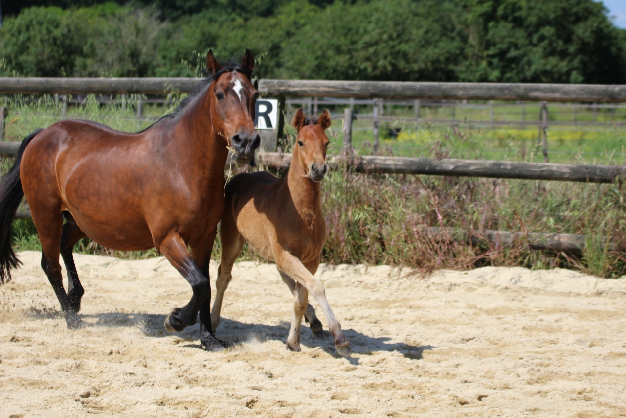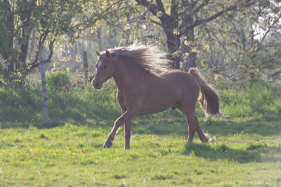 | Dire merci | Maintenant place aux poulinières ! Notre doyenne Eureka du Cazala née en 1992 elle a produit 15 poulains dont notre étalon Ulysse! Elle a fait son dernier poulain en 2017! Elle profite aujourd'hui de sa retraite en tant que tata auprès de nos pouliches. Photo prise l'année dernière, à l'age de 25 ans, 3 mois après avoir pouliné d'Hastag son dernier poulain. Madame se paye le luxe d'avoir le corps d'une jeune fille! ![]() Ici à 24 ans suitée de Girly ![]() |