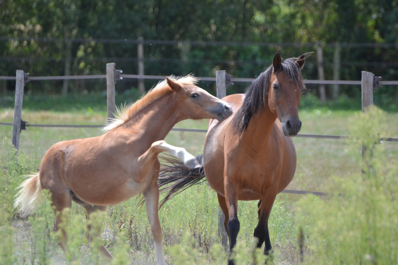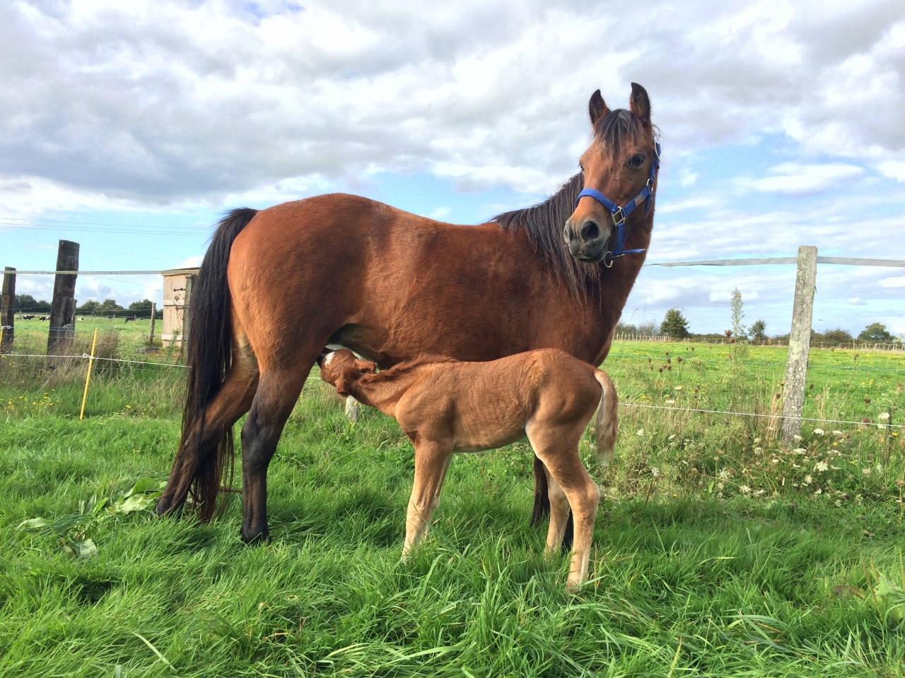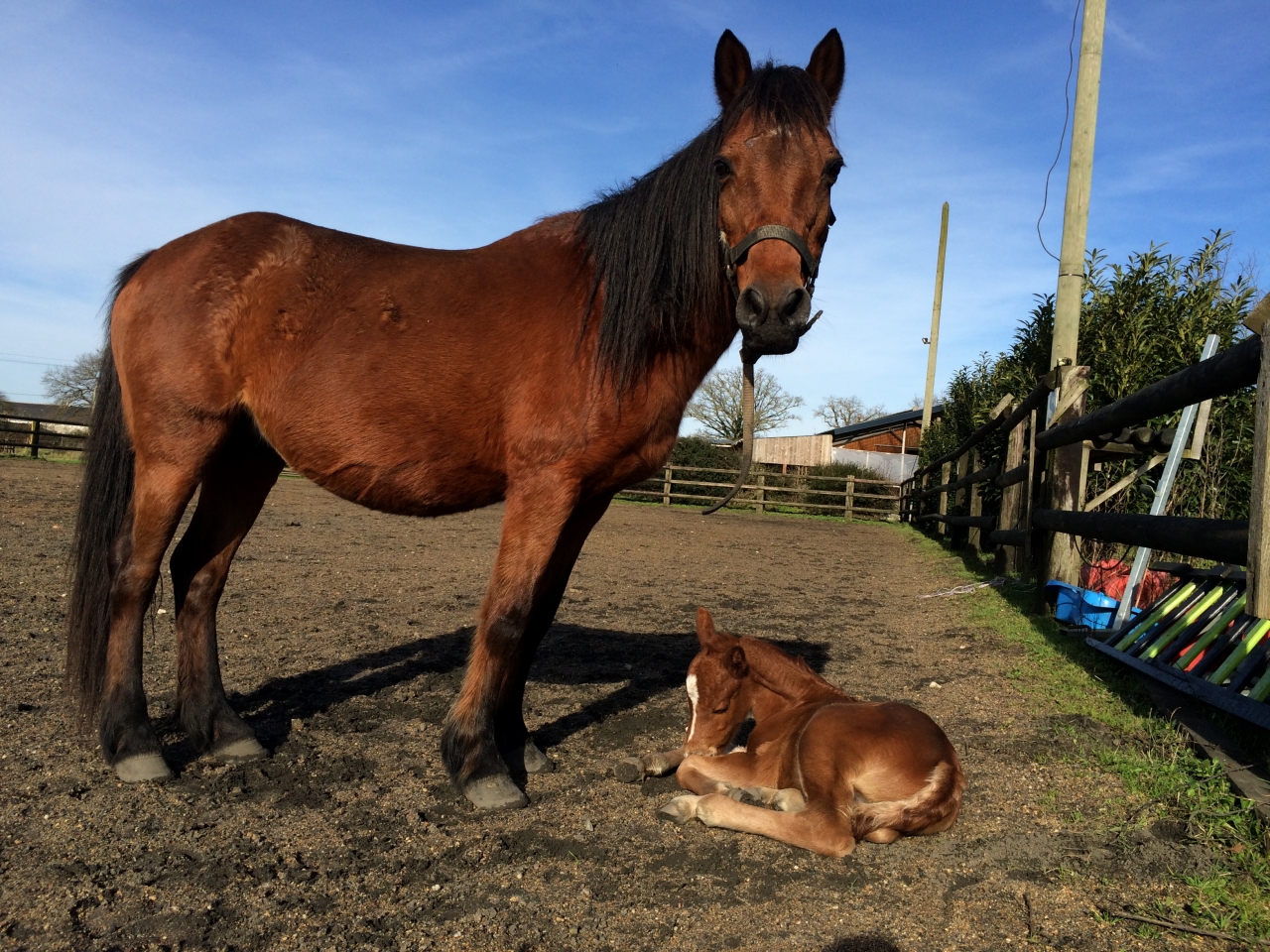 | Dire merci | Nougatine une ponette très particulière, ultra maternelle et proche de ses poulains. Elle est la mère de Get Lucky né avec 2 mois d'avance... Elle a tendance a déclencher ses chaleurs quasiment le jour où elle est mise avec l'étalon, prendre aux premières chaleurs et surtout faire des gestations très courtes avec pourtant des poulains en parfaite santé! ![]() ![]() |