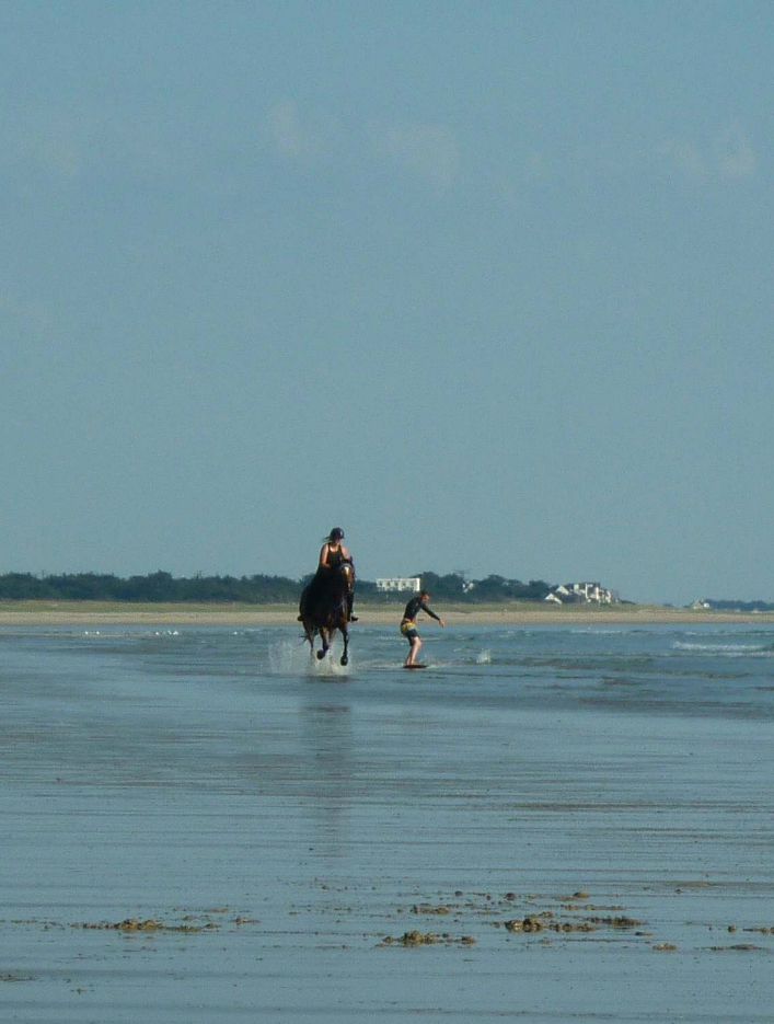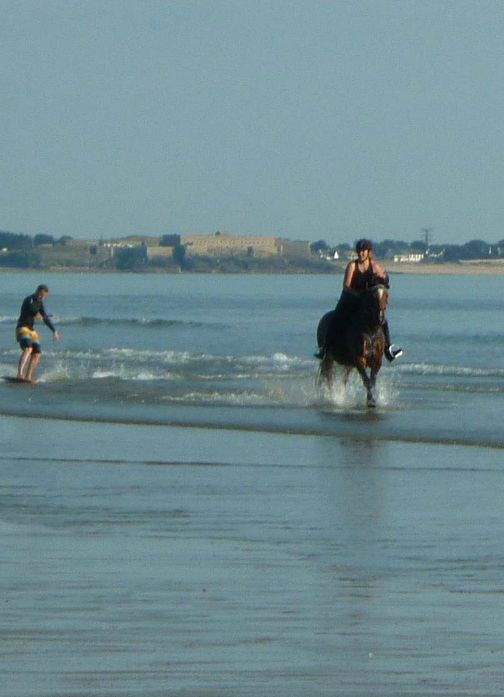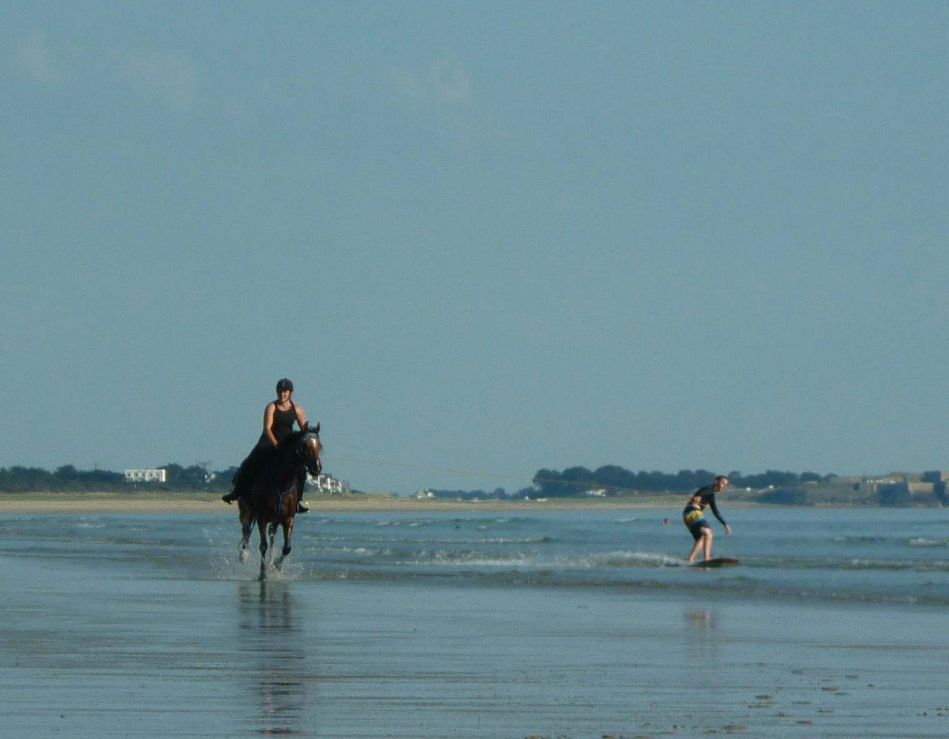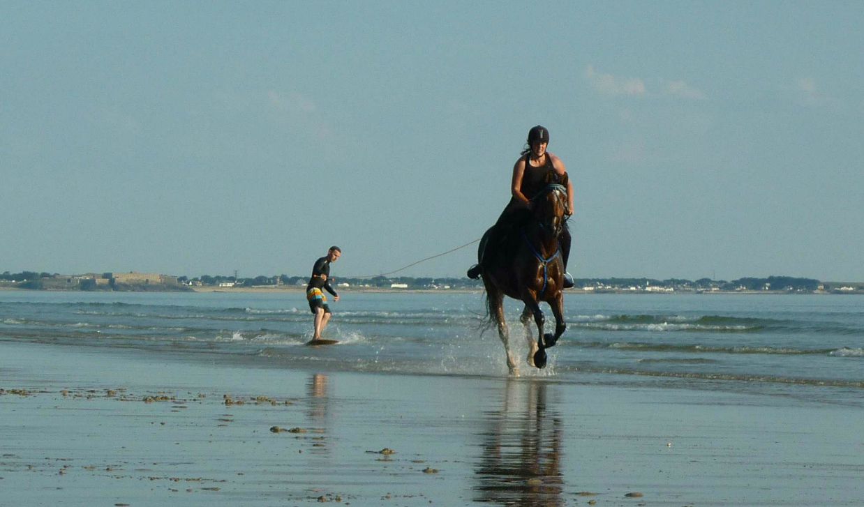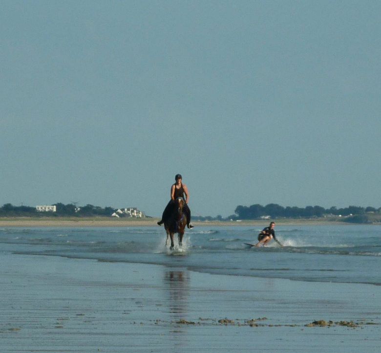 | Dire merci | C'est excellent mais il faut avoir la chance d'avoir la plage où c'est possible ( très longue, et très plate), le cheval qui s'amuse et qui est content de faire ce genre de con**, et le surfeur qui a plutôt un bon niveau. On a utilisé une plance type Alaia que nous avons fabriqué nous même. On habite à coté de la plage, ça nous permet de lier nos deux passions, il s'agit du premier test mais on va s'y rendre régulièrement ![]() |