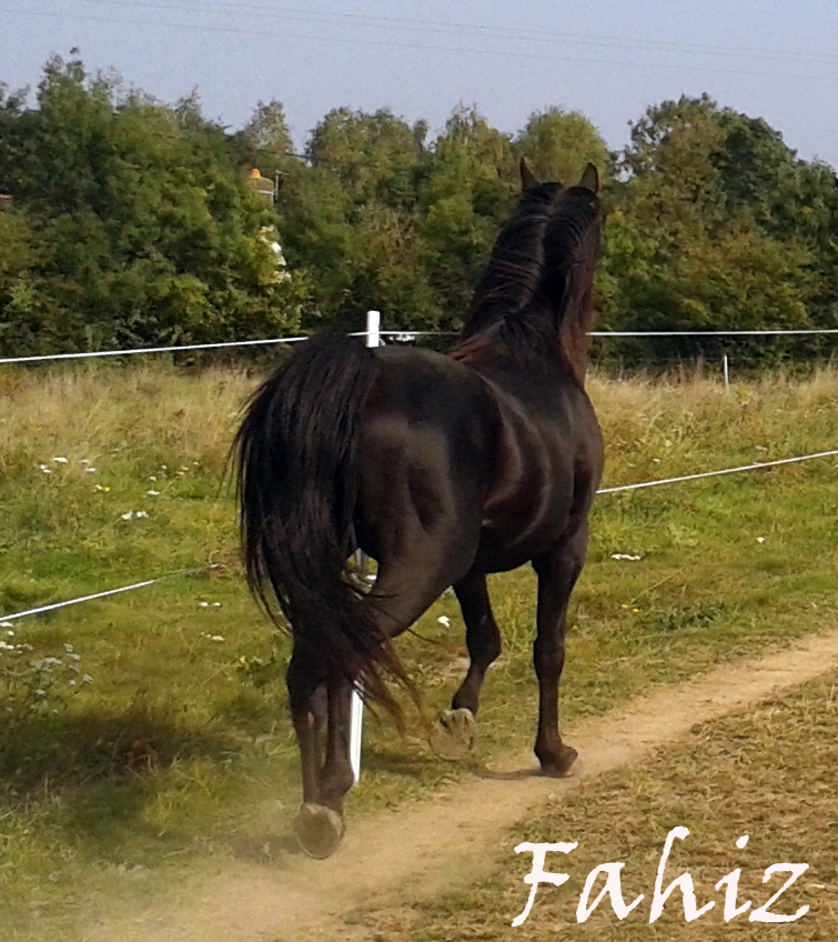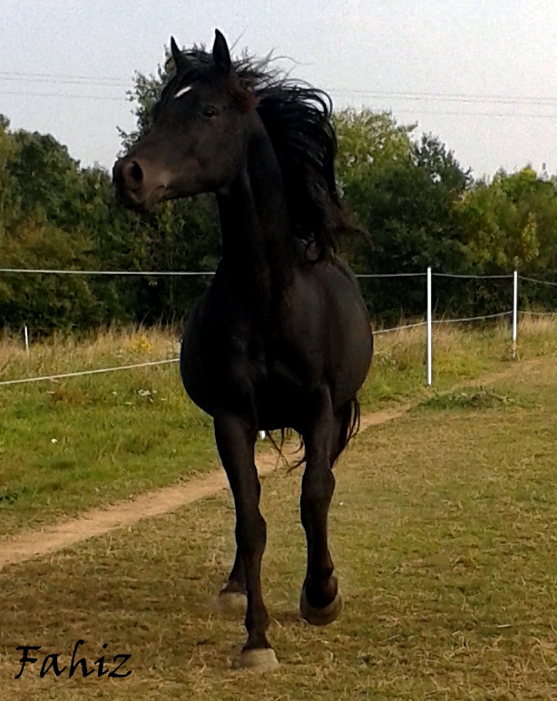 DéconnectéDire merci | Voici le papa de mon futur poulinou ! Fahiz Ibn Kuda, étalon arabe noir homozygote, sympa et polyvalent sous la selle, avec de belles origines (AH Kuda et SFA Fantasia). Et plutôt beau aussi !! ![]() ![]() |
