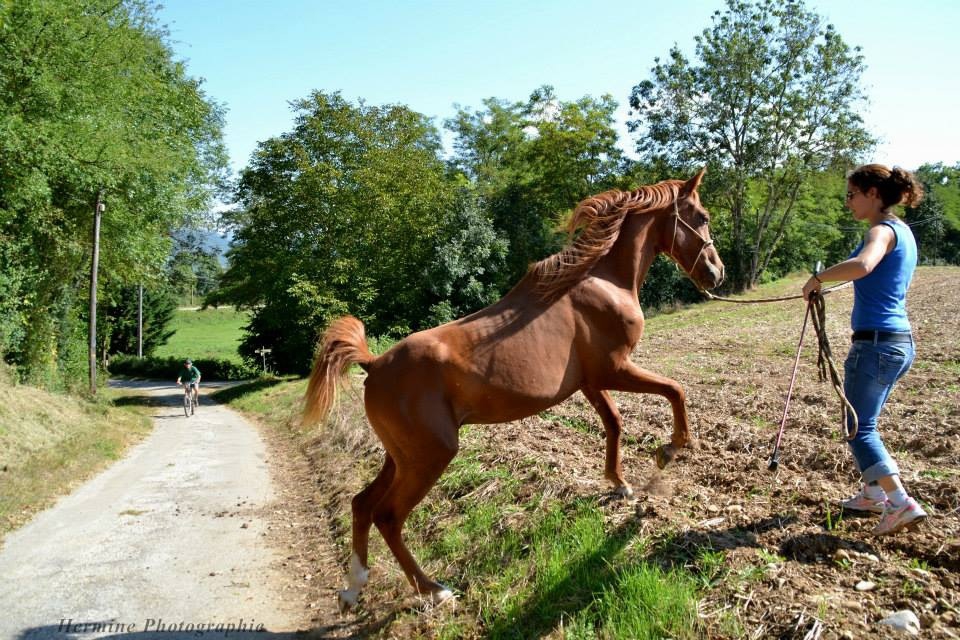 | Dire merci | Merci ... Ça n a pas toujours été rose depuis son arrivé ! J ai eu Bcq de mal au départ et j ai du me faire soutenir par des pro après un coup de pied mal placé ... Mais après 1 an de boulot et depuis que j ai Mon objectif de qualification loisir je prend Bcq de plaisir a le travailler ... Notre relation de développe dans le bon sens et une belle histoire se dessine ... |