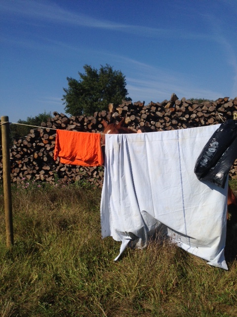 | Dire merci | oui il bosse plutot bien ... ce matin j'ai encore fait une seance avec une souffleuse en route, a nouveau les banderoles, plusieurs baches de couleur differentes , les pneus, le parapluie qui souvre ... c'était pas mal apres a voir le jour J quand il y aura du monde autour ... d'autres chevaux ... |