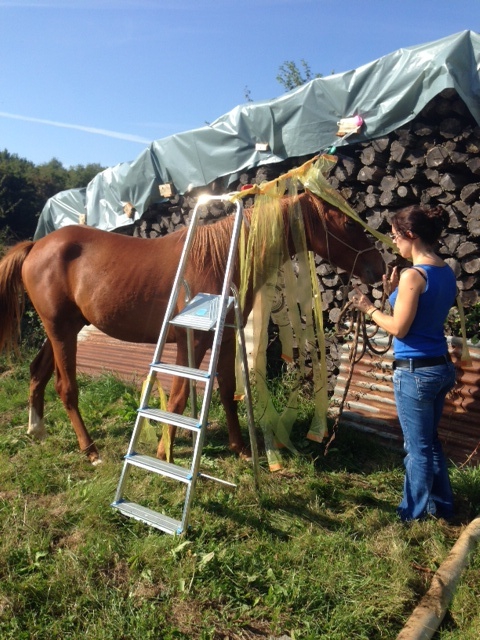 | Dire merci | au programme avant repos de l'hiver ... une qualification loisir le 4 octobre ! Du coup on se prépare ... motivé ! Le contre haut , ![]() le balai carillon , ![]() le sac a trainer , ( un peu surpris au debut !) ![]() Les banderoles ... plus dur deja ... On précipite un peu ! ![]() Le drap ! facile ... ![]() Marcher sur des sacs de grain vide ... ça fait du bruit ! ![]() On trotte en ligne droite ... si possible en restant sage ! ![]() On apprend a attendre son tour ... ![]() Y a encore du boulot et pleins d'idees d'exercices ...mais un poulain prometteur ! |