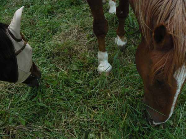 | Dire merci | Bon promis, demain, je fais des photos nazes avec mon APN moribond! Cela dit, y'aura rien de bien palpitant à voir. Sherpa et Belline qui mangent. Sherpa et Belline qui cherchent des pommes. Sherpa et Belline qui vont à l'abreuvoir. Sherpa et Belline qui chassent les mouches... |