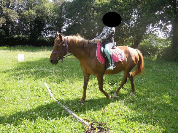 | Dire merci | A la base, je m'étais dit que je le monterais une fois vraiment bien remise en selle... Et peut-être en utilisant le van pour aller le redémarrer en carrière... Puis bon, le van n'est toujours pas prêt, et je me suis dit, bon peut-être en balade après tout, c'est plus notre environnement... Et puis finalement, que j'allais peut-être pas attendre d'être de nouveau aux trois allures avec Ode, et peut-être même tout de suite, mais si je pouvais avoir quelqu'un à pied avec moi ce serait mieux... Et puis finalement, fuck. |