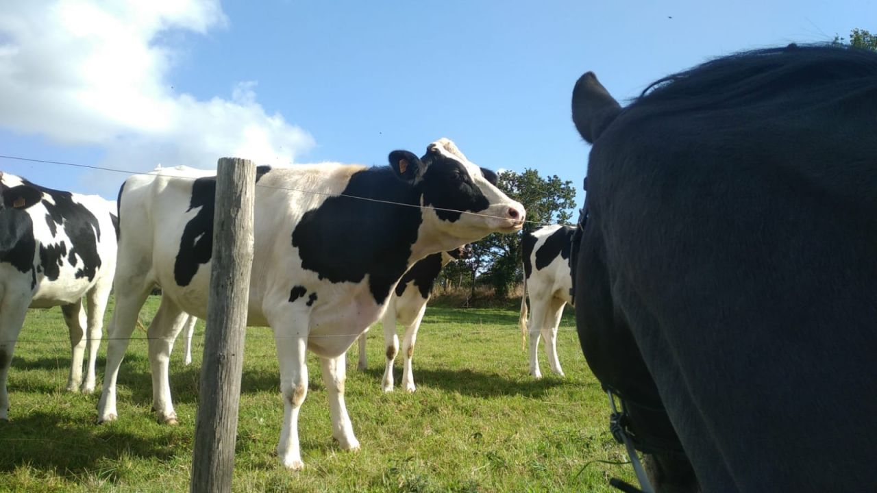| Dire merci | Ici les belles sont régulièrement en face des génisses mais on gagne toujours qq cm et souffles de dragons quand on longe un pré où elles courent avec ou sans sonnailles 😅 |