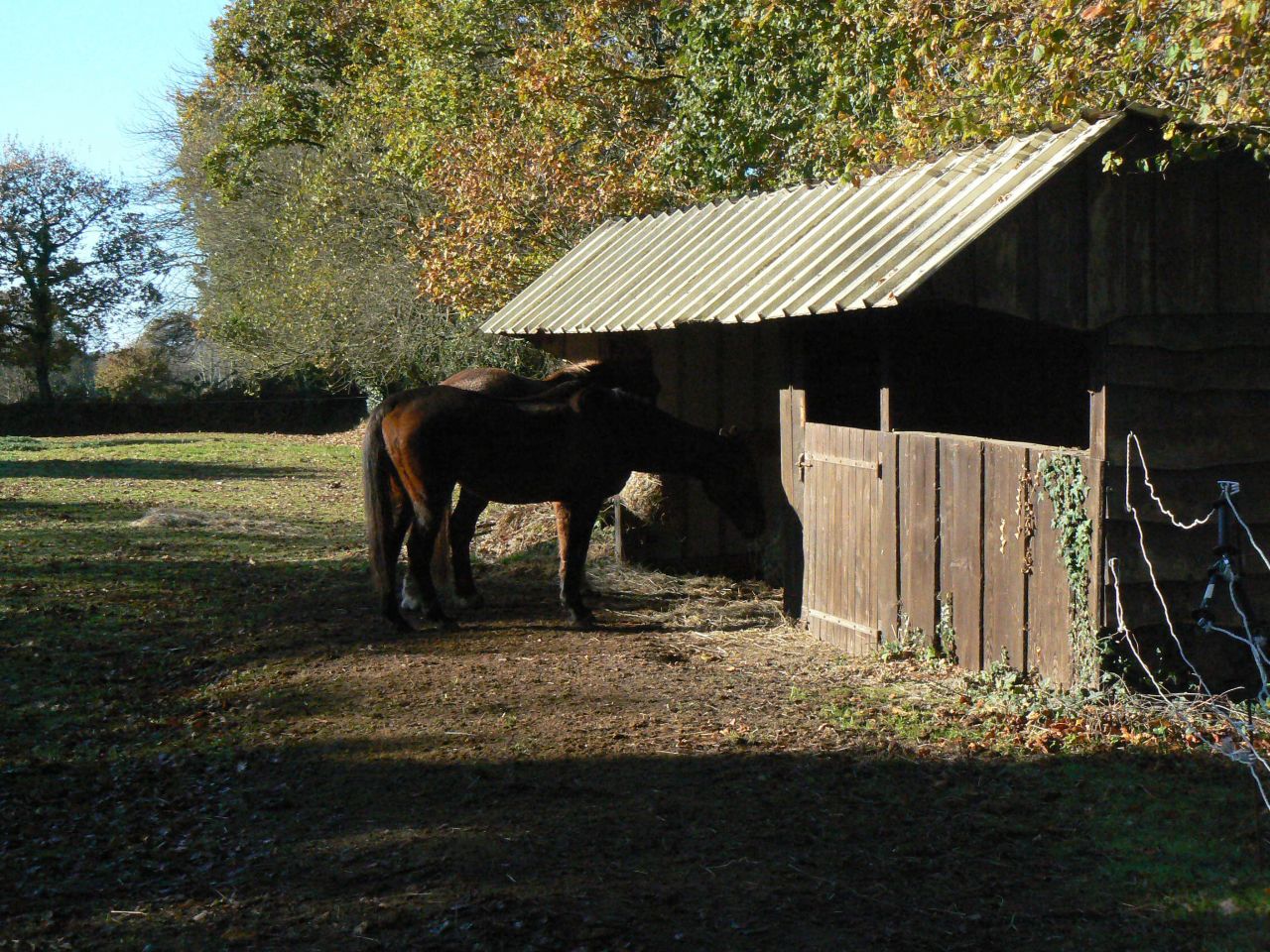| Dire merci | Oh que oui, on est tous très bien là! Cerise sur le gâteau, la zone où ils sont sur la photo est stabilisée jusqu'à l'entrée du pré. fini les chevaux qui pataugent dans la gadoue l'hiver. cet aprem, Pierre est revenu monter. On a fait une chouette balade avec de belles lumières d'automne. C'était cool. Pierre était plus détendu et a réussi à trotter de façon moins inconfortable, à défaut d'avoir totalement réussi à trotter enlevé. Je lui ai fait passer par le trot en équilibre en fait, je crois que c'est plus facile pour lui. Ca viendra. Il a même réussi à empêcher Bellinda de doubler. Sur le début de la balade, mon copain nous a accompagné en roller pour voir comment Sherpa réagissait. ben Sherpa, il a juste reconnu son copain W, donc il s'en foutait des rollers. Il s'est aussi un peu accroché à la selle pour se faire tracter. Bref, on va pouvoir faire du roller joering avec lui aussi. |