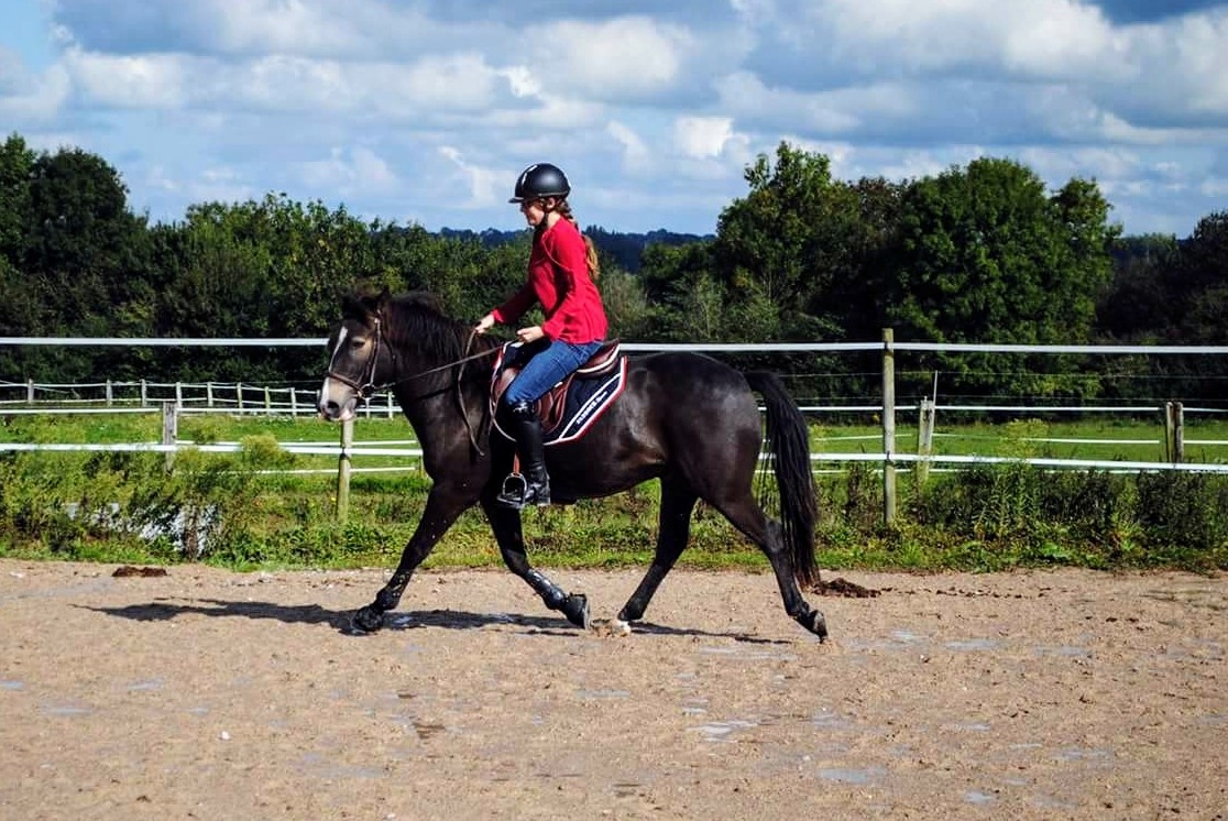| Dire merci | Salut ici ! 1 mois que je ne suis pas venue et pourtant il se passe plein de choses de notre coté. Déjà comme prévu Beau a repris le travail monté début août...Les progrès sont flagrants ,il se tient ,viens chercher son mors. Il manque encore d'endurance mais on va dire qu'après de longs mois d’arrêt et son surpoids c'est assez normal. En parlant de son poids ,il m'a fait un petit coup de yoyo ,à mon retour de vacances il avait pas mal repris ,en cause sans doute l'herbe même rase et rare du paddock qui est super méga grasse à cette période et la mini dose de céréales qui avait à la ration pour éviter qu'il ne pète un plomb quand les autres sont nourris..Bilan il n'a le droit a aucun écart ,ça va être une lutte de tous les instants de le garder à un poids correct. De mon coté ,ça y est je me suis remise à cheval ,non sans appréhension mais avec par contre un véritable plaisir une fois sur son dos. C'est hallucinant les progrès qu'il fait. Niveau fourbure ,cela semble se stabiliser . Il a sa ferrure ortho et ça à l'air de lui convenir. Plus de gène du tout sur la locomotion. Il voit l'ostéo mardi ce qui devrait finir de le mettre droit. Hier je suis allée le voir avec assimilee qui l'a monté ,et je pense qu'elle a bien aimé! j'ai fait quelques photos avec son appareil qu'on mettre très bientôt. Et petite anecdote ,la gérante de l'écurie l'a fait sauté un peu en liberté ,ce qui semble lui avoir donné des ailes vu que mon Beau s'est fait la malle en sautant la porte du manège (1m20 tout de même) hormis le fait que ce soit un petit con ,elle semble avoir été impressionnée par son geste et la facilité avec laquelle il a sauté , a priori j'ai un top poney de saut |