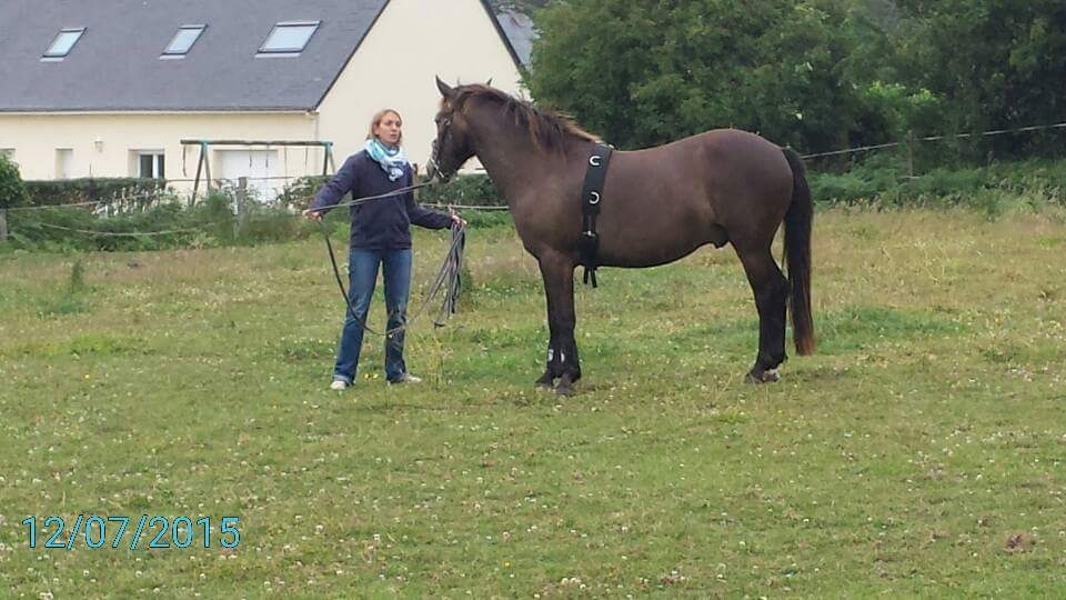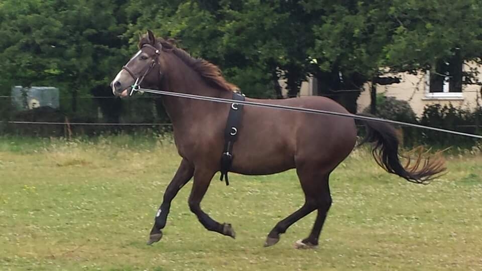 | Dire merci | Hello ici ! Quelques nouvelles de mon bon élève. Il continue de progresser à vitesse grand V . Pour l'instant on travaille encore dans un rond de longe mais je pense qu'il sera très bientôt prêt pour aller dans la grande carrière . Aujourd'hui petite séance tranquille , on a travaillé les transitions dans le pas . Les transitions montantes et descendantes. On a aussi bossé la mobilité des hanches sur des demi voltes renversées . Bref il fait tout très bien . Maintenant le prochain objectif c'est d'avoir une allure régulière et qu'il commence à venir chercher son mors |