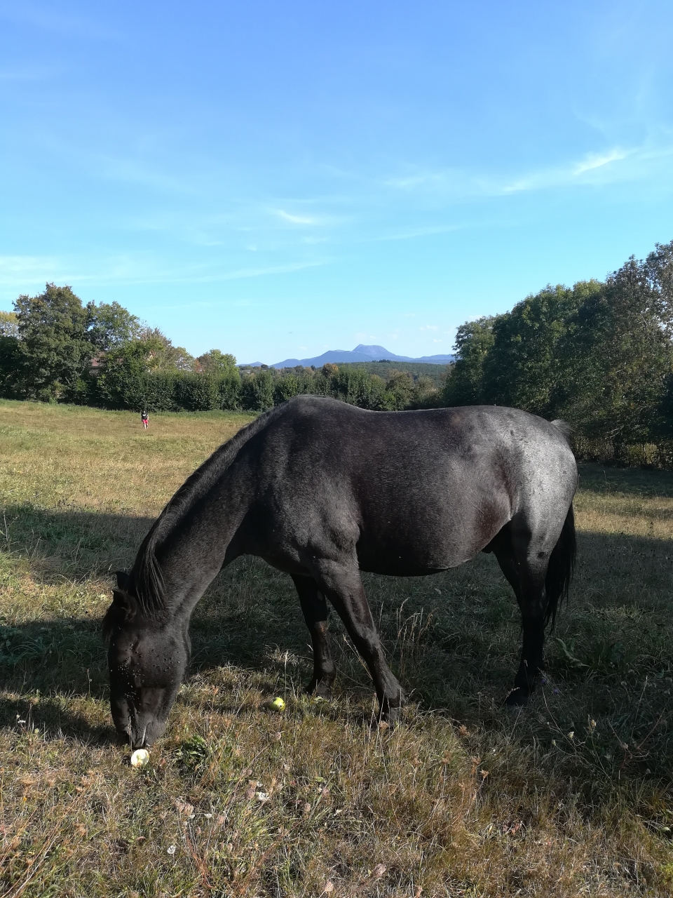 | Dire merci | Elle a mis son cheval et la jument d'avant à côté de chez elle pour pouvoir les bosser et du coup ma prêté ce petit âne et finalement niveau entente ça marche mieux comme ça. |