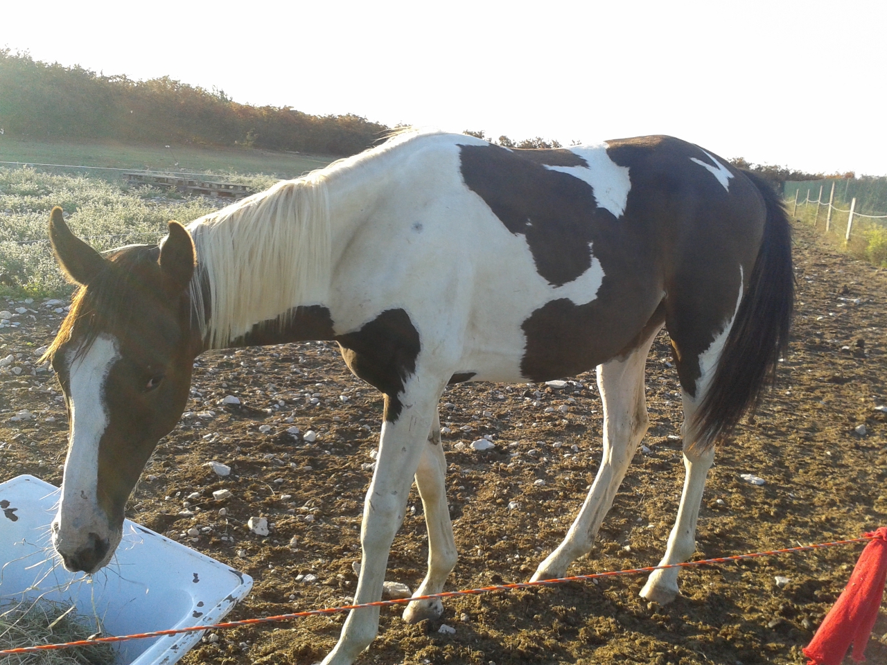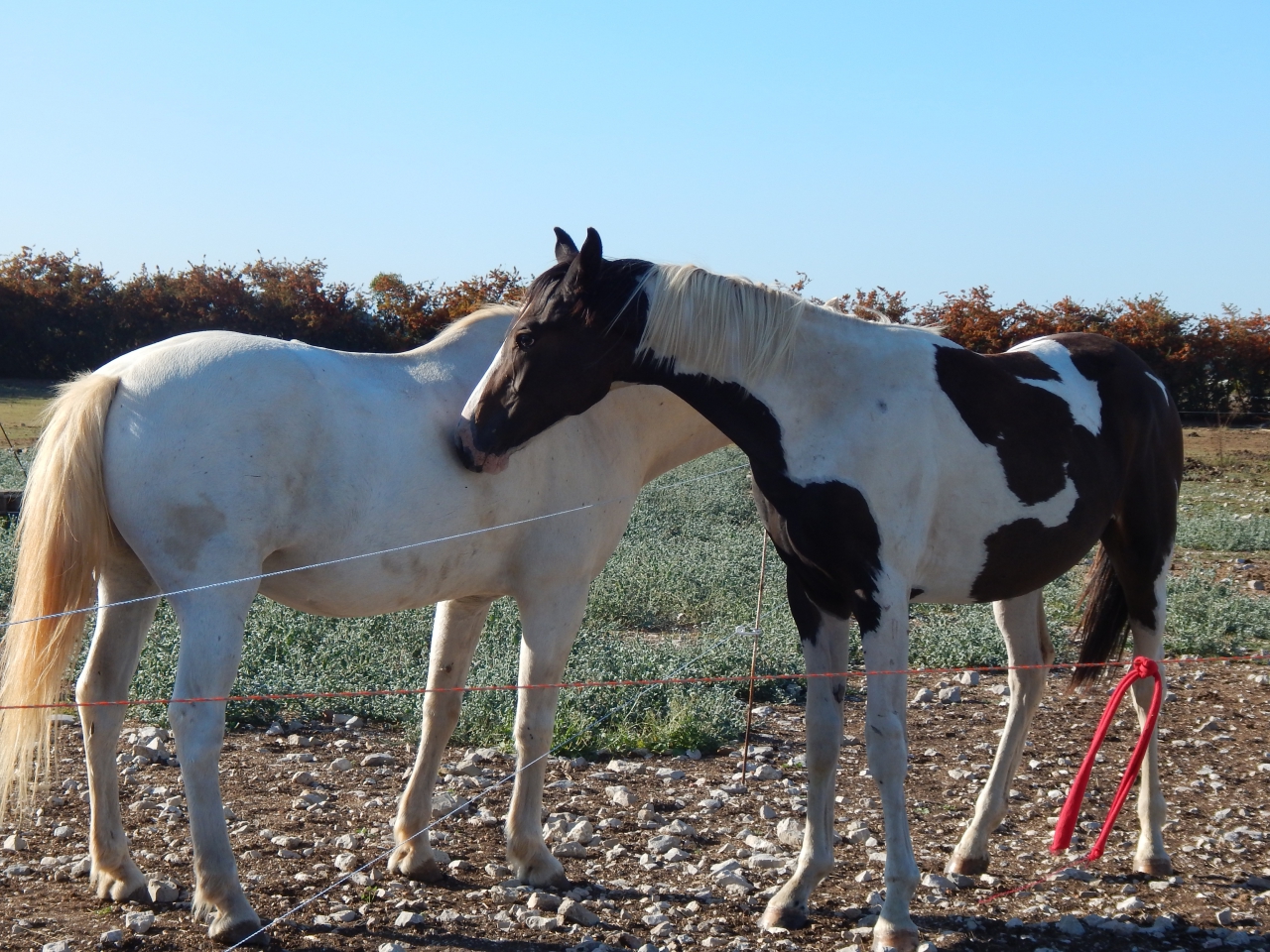 | Dire merci | bonjour à tous je vous présente Texas ,il a 17 mois;on a acheté poulinou ya 2 semaines on ne sais rien sur lui sa mère est aussi une jument pie noir mais sinon rien Sur ses papiers c'est juste inscrit ONC Selle. Il mesure près d'1,50m ![]() ![]() une photo donnée par ses anciens proprios avec sa maman ![]() Merci pour vos réponses |