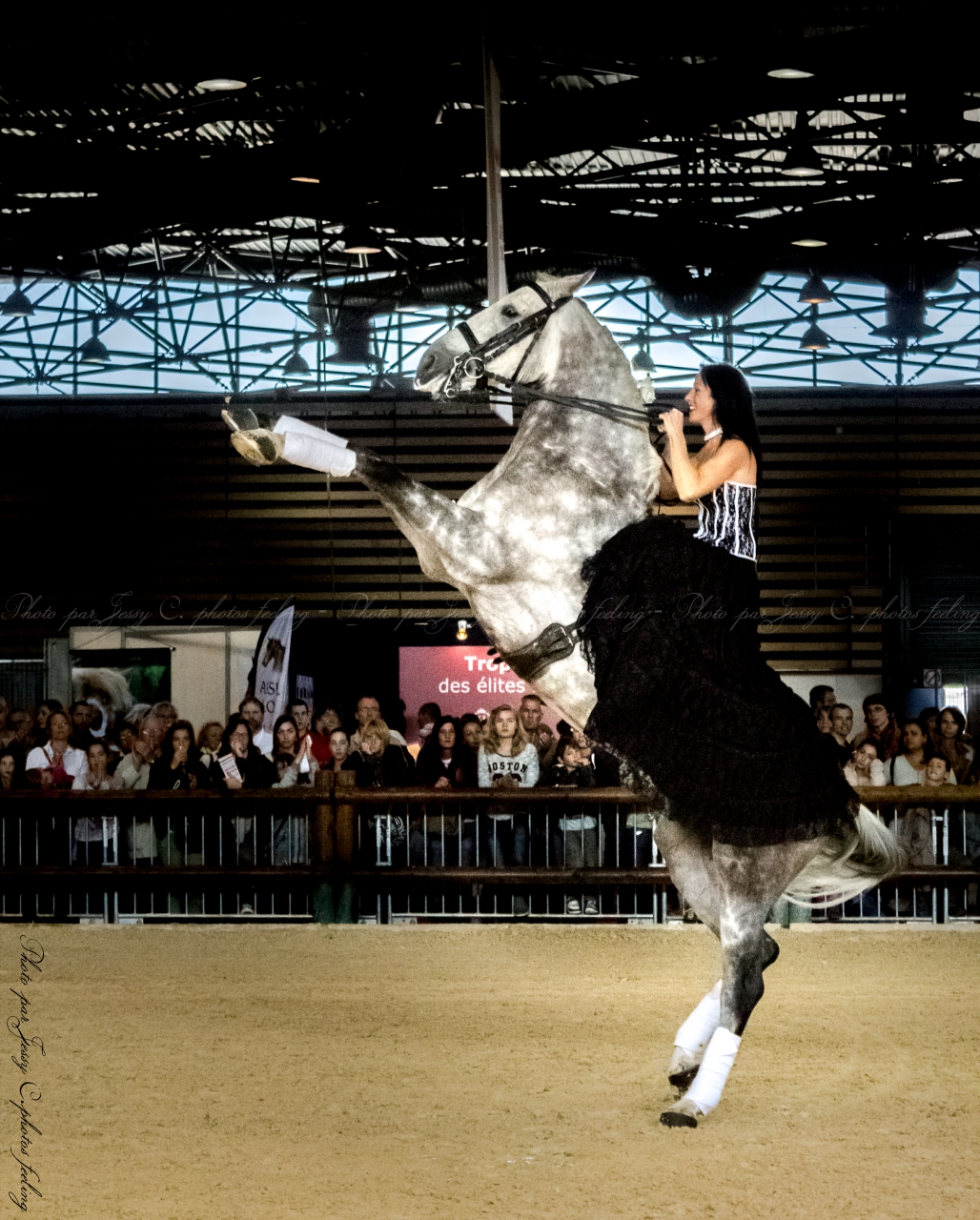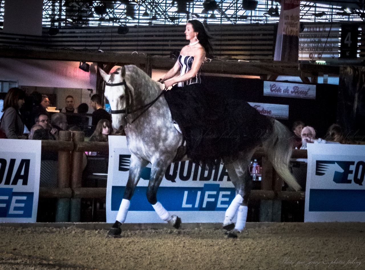 | Dire merci | bonjour à tous, j'avoue je viens plus souvent... être double actif ne me laisse guère de temps libre... mais voilà, je rentre d'Equita lyon, et nous avons donc fini la saison 2014 de spectacles... je vous fais un petit résumé en images... 2015 sera l'année du changement... D'abord, parce qu'il y aura ce gros spectacle dans les arènes des Saintes Maries de la Mer, pour la feria du 14 juillet, où je me retrouverai en piste aux côtés de très grands artistes, tels que les voltigeurs de Laurent Douziech, ou encore Clémence Faivre... Cette date me fait aussi plaisir qu'elle me fait peur, car c'est un rêve qui se réalise, mais aussi mon plus gros challenge! Et puis 2015 sera dans la lignée 2014 pour le travail, puisque avec Emporio on se tourne pour de vrai vers une équitation beaucoup plus classique, et bien moins "spectacle" et flamenco... Pour plusieurs raisons: la première, c'est qu'Emporio est fait pour ça, sans aucun doute... je crois que définitivement il n'est pas fait pour le "cirque" mais bien pour le dressage classique! et en plus, je crois qu'il est assez doué ;-) Ensuite, l'influence des amis et coachs(Nicoals, Jean, Laure!), la découverte de nouvelles sensations qui me transportent... je pense que vous allez pouvoir nous découvrir en concours pour la première fois de ma vie, autre challenge! Et sans doute davantage que sur les pistes des cabarets... Bref assez parlé... ah si, j'ai oublié de vous dire, mon cheval, Emporio... quel cheval ! |