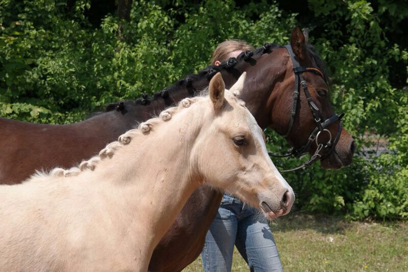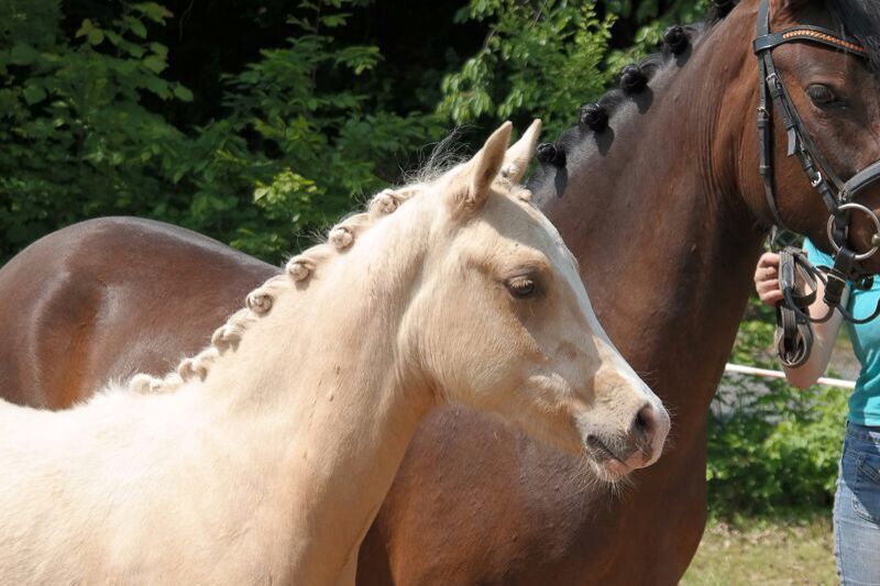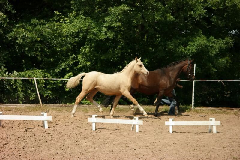 | Dire merci | Trop mignon, et les parents sont superbes aussi ! c'est une super race de poney !!! puis un petit palomino ca me fait fondre tout de suite ! |