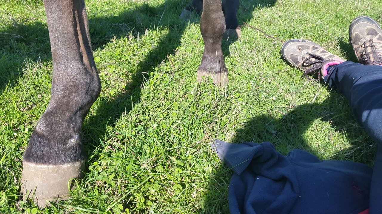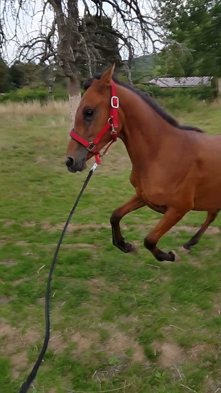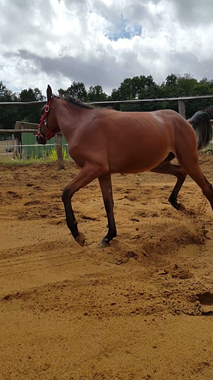 | Dire merci | Isis a vu le MF en urgence aujourd'hui, 2 semaines que j'essaie de caler un rdv avec lui et je pars en vacances lundi... du coup ce n'est pas son maréchal habituel qui est venu, mais celui qu'utilise les filles de la pension qui m'avait déjà conseiller le véto.Point fort c'est que du coup ce maréchal travail avec ce véto. Il a paré juste un peu pour redresser le pied d'Isis car en compensant, elle devient cagneuse à l'AD, il l'a redescendu en talon comme le véto préconisait. Par contre, il va rappeler le véto car pour lui il faudrait la ferrer devant le temps qu'elle se redresse... il revient dans 6 à 8 semaines pour ferrer si le véto donne son accord. Il me conseil de commencer à "travailler" avec elle sur des cercles, notamment à droite pour l'obligé à utiliser son pied. Je n'ai aucune idée de quel genre d'exercice on peut faire sur des cercles! Elle a 18 mois, je ne veux pas qu'elle "travaille" ! Des idées, avis? |