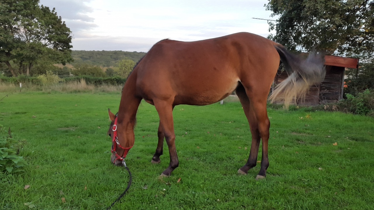 | Dire merci | merci @camboui21 Isis est retourné au pré mercredi dernier. Elle est avec une pouliche de son age qu'elle connaît déjà et une autre de 4 ans dont elle a fait la rencontre quelques heure avant en ballade. ![]() Alors début d'après midi, on part en ballade avec la ans qui sera sa futur colocataire et un papy de 21 ans qui servira de référent en cas de "peur". Finalement, c'est Isis qui a ouvert la marche de la ballade quasiment tout le long, peur de rien (chien qui saute sur le grillage en aboyant, motos cross qui nous voient au dernier moment) alors qu'elle sort de mois de box... Que du bonheur ![]() On aura fait près de 6.5kms en 1h30 même pas rendu compte! je ne pensais pas faire si long ! Et en plus même pas fatigué poulichette ! Elle trottinait encore en arrivant à la pension ! Puis vient le lâcher au pré, Isis domine l'autre petite (Espoir) mais elle est dominer par la 4 ans (Balira). Ca lui fait un peu les pieds mais ca m'embête quand même un peu... (j'aime bien la savoir dominer comme ça je suis sûr qu'elle mange correctement...) Mais tout se passe bien Une chose à laquelle je n'avais pas pensé, c'est qu'ils annonçais un gros orage pour le jeudi! et je suis pas bien rassuré de l'avoir remise dehors H24 la veille de l'orage,une baisse de température de près de 15°... Je passe la voir le soir,l'employé me dit qu'elle n'a pas mangé, qu'elle est resté caché sous l'abri... (Ben oui avec Balira qui domine, elle l'a empêcher de s'abriter toute la journée alors profite que celle-ci aille manger pour s'abriter à son tour...) Je vais la voir, quand elle me voit, viens au galop je la rentre pour lui donner son repas, elle tremble affreusement de partout et elle a sacrément perdue!!! . Je la sèche pendant qu'elle mange. J'appelle le proprio de la pension pour savoir si elle peut passer au moins la nuit au box, il refuse, me dit que tout est normal, qu'il ne faut pas l'habituer a rentrer dès qu'il pleut (ça je sais et comprend bien, mais lui n'a pas compris mon ressenti, Isis vient de passer 4 mois en box, avec des grosses chaleur, des sorties au paddock uniquement les jours où il faisait beau et là du jour au lendemain se retrouve dehors sans abris sous la pluie et 15° en moins en quelques heures! )Donc elle retournera dans son pré, je m'assure qu'elle arrive à s'abriter un minimum sans se faire bouffer par Balira... Bref maintenant elle est bien dans son pré, Elle est contente de me voir à chaque fois en venant à la porte dès qu'elle me voit Message édité le 01/09/15 à 14:00 |