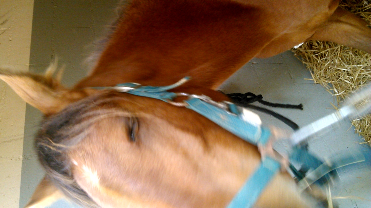 | Dire merci | Me voilà de retour... J'ai le sourire, pas par de bonnes nouvelles, mais parce que bébé a su me remonté le moral à bloc... En arrivant elle a hénni comme jamais je l'ai entendu le faire et ne s'est pas arrêté tant que je n'ai pas ouvert la porte du box... Les vétos étaient à 2/3 box plus loin entrain de faire des soins à un autre cheval, ils se sont tous retournés m'ont regarder bizarre en me disant : "eh ben dis donc! Elle vous attendait!" J'ai une larme qui m'est monté au coin de l'oeil... Ensuite, moment de câlin, de grattouilles et de bisous le temps que le véto puisse venir nous voir... Quand il arrive il me demande comment je la trouve aujourd'hui : je lui dis qu'elle a toujours mal mais que je trouve qu'elle se déplace plus facilement que hier, et qu'elle a un mental de guerrière... il est d'accord avec moi sauf sur la douleur il ne me contredit pas mais ne me confirme pas non plus... On parle de la suite, au départ il était prévu de changer le pansement et le VAC ce weekend mais finalement on va lui laisser tant que c'est propre et fonctionnel. Puis je tenais à lui parler euthanasie,je lui ai dis que tant que je la voyais comme ca il était hors de question pour moi d'abandonner. Il était tout à fait de mon avis et m'a dit que c'est bien et important d'en parler suffisamment tôt dans les cas graves comme ça mais qu'on en est pas encore là pour elle... ![]() On a parler aussi de ses avantages d'être bébé: moins de risque de fourbures, les choses peuvent évoluer très vite (certes en bien mais aussi en mal) et voilà... Je repars avec le sourire malgré un pronostic qui stagne... ![]() j'ai des petites photos et vidéos pour vous montrer comme elle se déplace... |