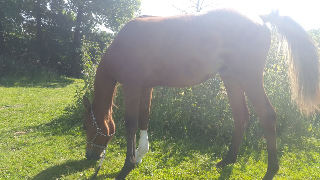 | Dire merci | Le veto est passé ce matin, Isis dès la sortie du box, ne boitait pas au pas, on a fait quelques foulés de trot avec une légère boiterie, les virages eux ne sont pas top. Le veto était assez surpris de la belle évolution ![]() il a refait le pansement, pas eu besoin de couper le bourgeon, pour lui ce n'est pas inquiétant le vulketan suffit pour le moment, si ça bourgeonne davantage on utilisera une autre pommade plis agressive mais couper sera le dernier recours et seulement si ça augmente. La plaie est vraiment très belle. Je lui ai parlé du Cirale pour lui pas d'intérêt dans le cas de pitchoune. enfin voilà pour le bilan, il m'à dit au pire elle sera inmontable, reste à voir comment l'articulation se cicatrisera, soit en partie et de façon à lui éviter la douleur (plutôt bien partie pour) soit en se soudant totalement ce qui la fera boiter mécaniquement. Donc au final on en revient aux supposition du départ avec une évolution plutôt positive |
