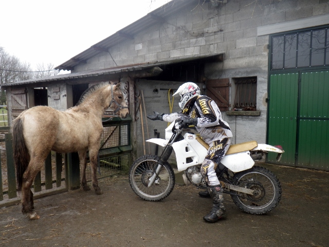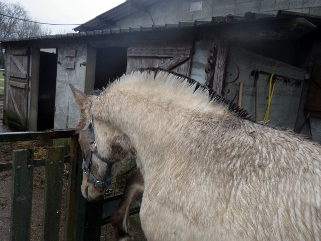 | Dire merci | Petites photos du jour, sous la pluie mais bon... La preuve de la bonne intégration de la Miss ![]() ![]() ![]() On a eu l'occasion de lui montrer une nouveauté... on en a profité pas impressionnée plus que ça, même au démarrage ! ![]() Et le scoop du jour... essai de coiffure ![]() ![]() Bon, soyez indulgents, c'est la première fois de ma vie que je fais ça, et sur un poulain qui gigote en plus Sinon elle a perdu à peu près 4 kg de poils d'ourson |