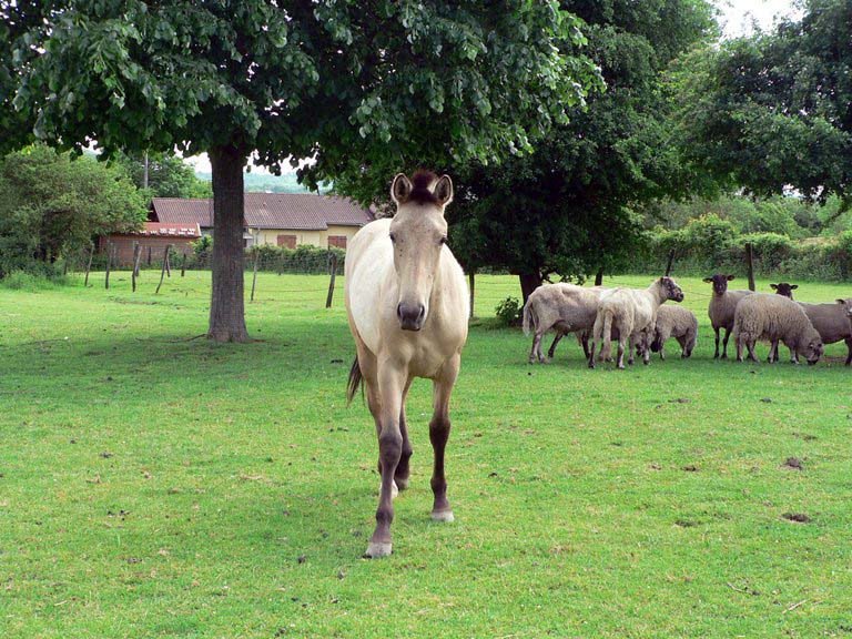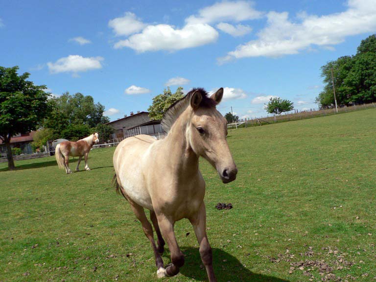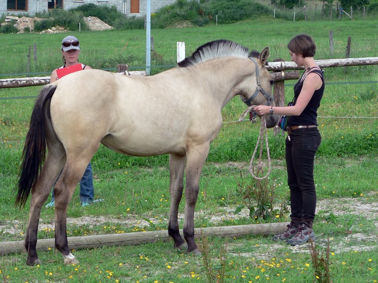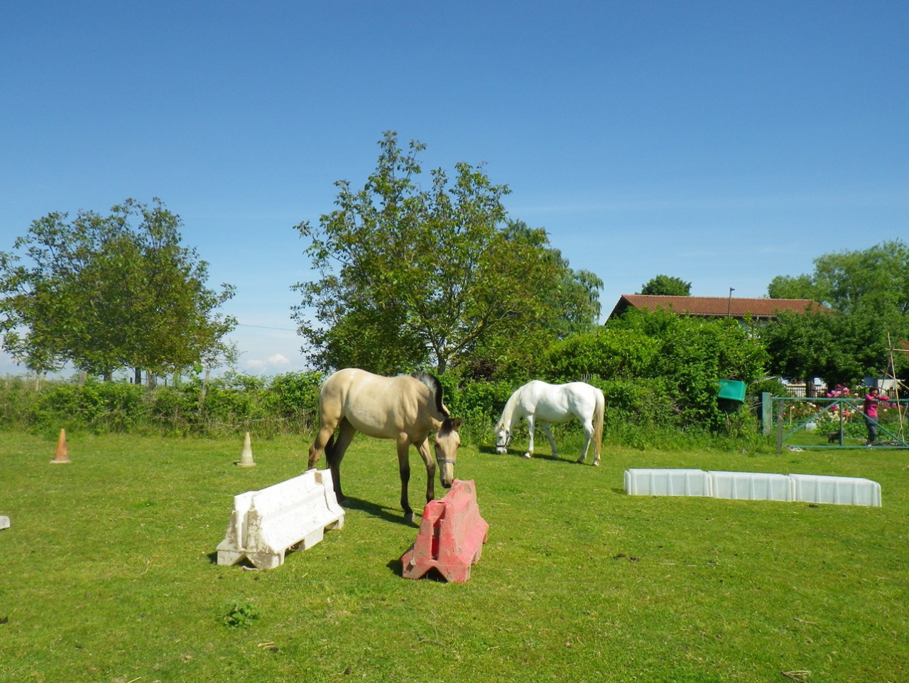 | Dire merci | Oui c'est vrai qu'il y a plein de trucs à leur montrer ! Ce weekend mon frère s'entraînait à tirer à la carabine à plomb, juste au bord du pré... bah elle est passée pas loin, elle a fait 1 bond, puis après elle est restée brouter juste à côté... désensibilisation de poulain à la carabine quoi C'est tout bête, mais ici on a pas mal de chasseurs, ça pourra toujours servir en balade dans le futur ! |
