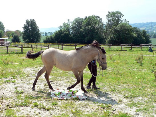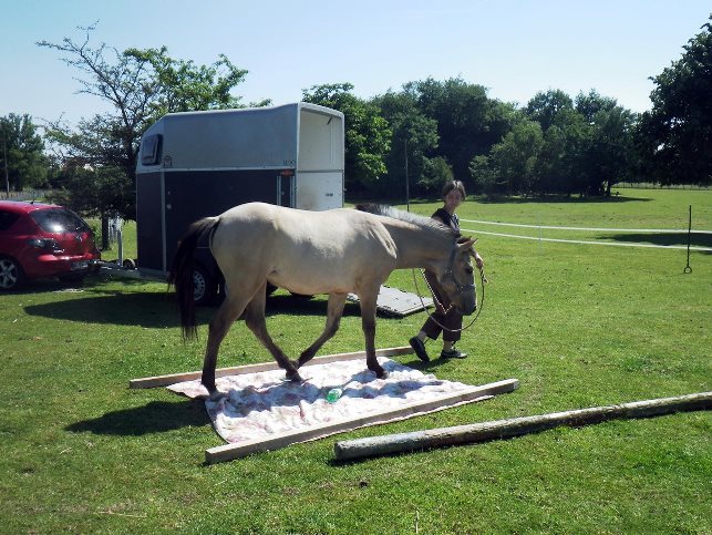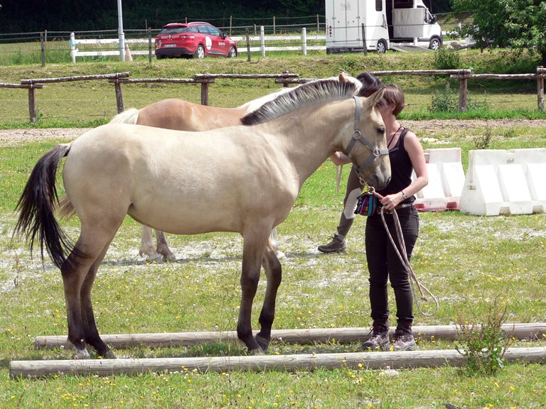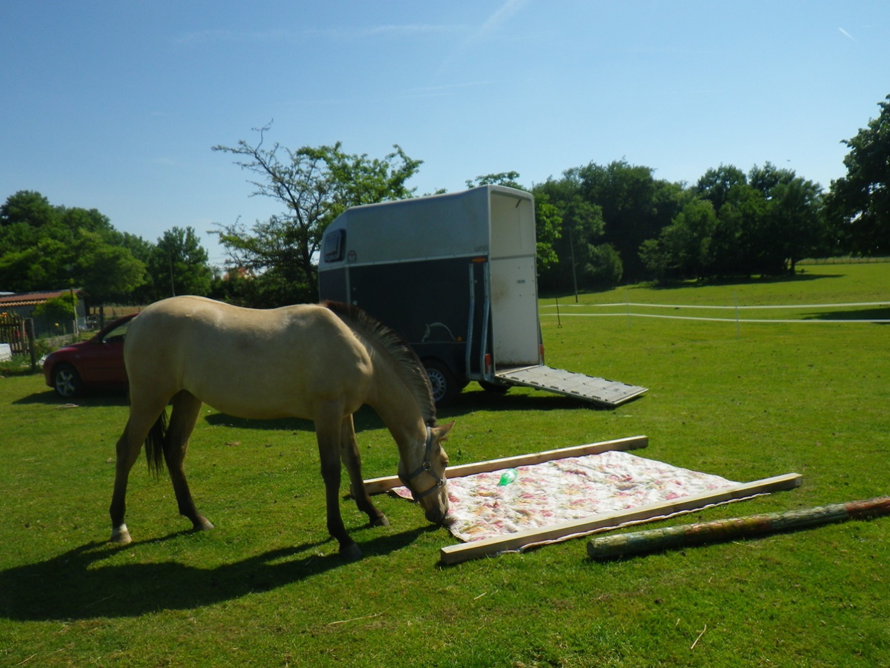 | Dire merci | Il est beau ton petit zèbre!! Son frère aussi n'a jamais voulu passer les banderolles même à la maison.... et pourtant en qualif il est passé très très vite sous une arche de sacs plastiques! ce n'est pas le truc de Beltis de passer les bâches, les banderolles.... il stresse vite! mais il reste malgré cela un bon cheval de loisirs, très sympa sous la selle! il n'a pas une âme de guerrier, il préfère suivre que mener! Elle est encore très jeune donc c'est normal qu'elle bouge beaucoup entre des exos. Divino à un an aussi adorait marcher, partir à l'aventure de nouveaux trucs, et pour lui c'était l'horreur d'attendre!! Pour y remédier et bien j'ai continué à avoir des moments d'attente où il ne devait rien faire, en le gratouillant, et ce de plus en plus longtemps. Parce que selon moi si tu la fais bouger sans arrêt, elle ne va pas apprendre à rester dans le calme.... et la patience va venir en grandissant |
