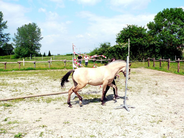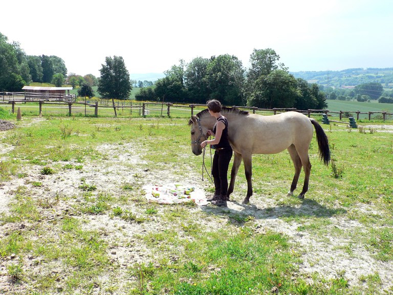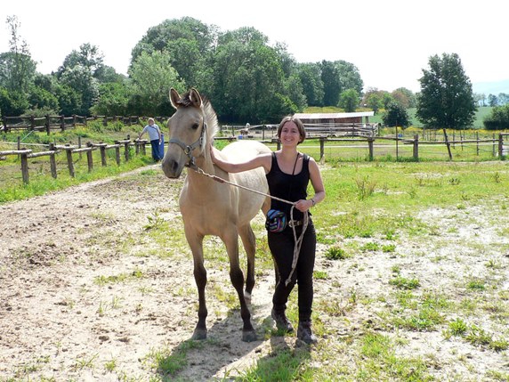 | Dire merci | Je crois qu'on a un peu le même passé! Mon Montana a été débourré lorsque j'avais 13 ans je crois, il n'a rien vu avant et j'étais trop jeune pour savoir quoi lui faire voir... On s'est rattrapé par la suite, mais j'avais vraiment envie de profiter à fond de mon poulain, dès le début! Je sais que Tizo sera également plus difficile que Montana qui a un caractère assez souple globalement, mais c'est trop génial de leur faire découvrir toutes ces choses, de les voir prendre de l'assurance... |