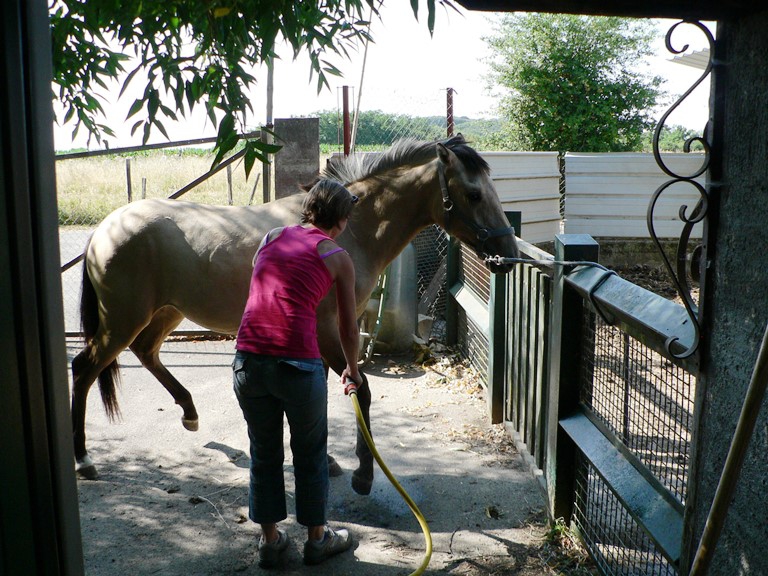 | Dire merci | Quelques petites photos estivales de ma pepette... qui se la coule douce, avec cette chaleur on ne force pas trop hein ![]() ![]() ![]() ![]() ![]() la crinière penche un peu, mais ne tombe pas encore ![]() ![]() Et au retour, on passe à la douche... ça fait lever les pattes ![]() En fait elle aime pas le jet sur les membres, par contre sur l'encolure ou le dos, elle s'en fiche... bien brave cette poulichette hein |