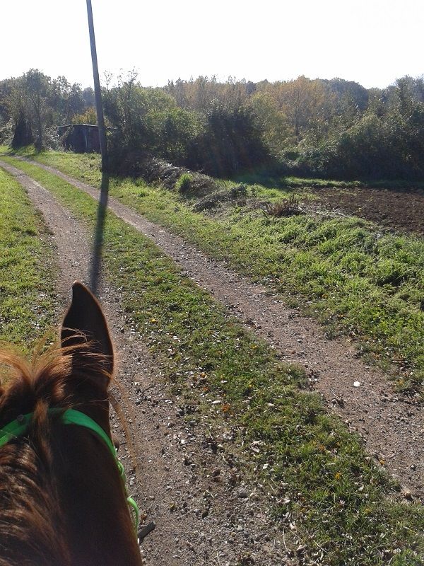 | Dire merci | Pour Barouf, on verra s'il confirme sur les prochaines sorties. Car au final, je ne vais pas l'arrêter cet hiver mais plutôt poursuivre sur une sortie de 10 à 15km par semaine. Oui parce que la Princesse entre en repos hivernal. Alors du coup, pour que mon homme puisse continuer à monter, je vais lui laisser Barouf ou Voltaar, suivant comment ça se passe avec ce dernier. bah oui, à la base c'est quand même son cheval Voltaar ![]() En parlant de la bête, on a fait une sortie tous les deux ce matin. Cette fois, j'ai choisi de faire le même trajet sur 1h45 environ, que d'habitude. Mais pour ajouter un peu de nouveauté, on l'a fait à l'envers et surtout, j'ai pris Monsieur à la sortie du box, c'est à dire sans passer par la case "pré" avant. Donc je suis partie en marchant pour l'échauffer tranquillement. Il était plutôt calme donc après 10min, zou, à cheval ! Là il était beaucoup moins calme ![]() Mais c'était pas de la nervosité ou du stress, juste de la mauvaise volonté. Alors ça consiste à marcher le plus lentement possible (comparé à Barouf, ça va quand vite et ça pousse fort lol), se trimousser de droite à gauche et faire des petits stop... ![]() Ah, et avoir peur de tout et n'importe quoi aussi ! Bah oui, vous vous rendez pas compte, c'est pas la même chose que d'habitude vu que c'est pas dans le même sens ![]() Qui dit faire le circuit à l'envers, dit prendre les grosses montées techniques en descendant. J'ai cru que j'allais mourir, il fait vraiment pas attention et quand il trébuche, il se fait peur, panique et c'est pire. C'est un vrai gros pataud ![]() Sinon, au bout de 45min, il s'est calmé et on a pu terminer le tour rênes longues, tranquillement aux 3 allures. Y a pas, il garde quand même un foutu caractère ce machin Quelques photos sous un soleil radieux ![]() ![]() Un petit étang au milieu de nul part, aménagé pour passer des bons moments en été (barnum, barbeuc...) ![]() ![]() ![]() ![]() ![]() ![]() |