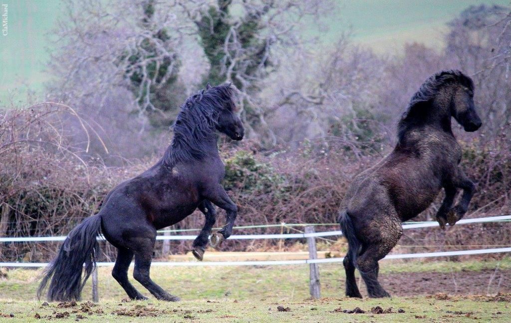 | Dire merci | Voici ma petite contribution ... Le jeune étalon à gauche, qui essaye de défier l'ancien à droite ! Tous deux des mérens ! ![]() |