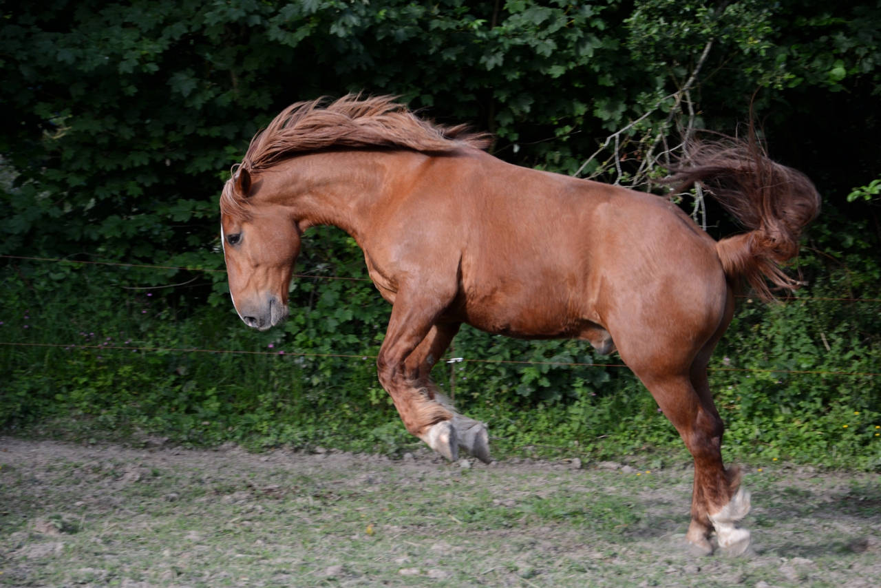| Dire merci | Pour une fois j'en ai plein qui vont dans le thème, pas facile de choisir... Je prends celle-là : ![]() Deux PSAr, Aevann (entier bai de 4 ans) et Tilak (hongre alezan de 7 ans) dans leurs jeux. |