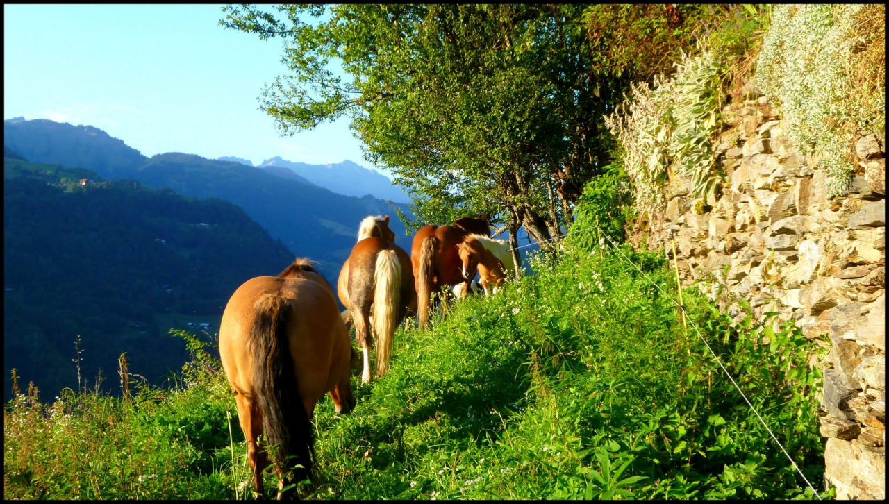 | Dire merci | Bonjour à tous et toutes !! Ayant trainé pas mal de temps par ici, et m'ayant absenté un sacré moment aussi ! Je me devai de donner quelques nouvelles ! Je suis effectivement toujours dans le monde du cheval, et très bien accompagnée ! Je suis Accompagnatrice de Tourisme Equestre en Savoie, à La ferme Equestre du Chozal à Cohennoz (73400) : Au coeur de la Montagne, dans un petit coin de Paradis ! Chaques randonnées est un grand moment de Plaisir pour le Coeur et pour les yeux ! On pars en Rando toutes les semaines de Juillet et d'Aout à l'aventure : Bivouac, plusieurs destinations, Stage ou balade journée, enfant ou adultes bref, on se Marre !! Actuellement, il y a 9 Poneys et 5 Juments, avec leurs caractères qui nous fait fondre ... Quelques photos pour illustrer tout cela ![]() Alors ça, c'est moi : Bah oui j'ai grandi tout de même ! ![]() Une partie de la Troupe ![]() Elle, c'est ma Pilouche ![]() Le parc à la maison ![]() La belle Savoie ( Je ne vous mens pas hein )![]() ![]() Avec même le Mont-Blanc ! ![]() Clafoutis : The Best Pony ! ![]() Bref, tout le monde il est content !! ![]() Beaucoup d'aventures et de rire sur ce forum, je me devais de vous tenir informés ! Bises à tous ceux qui me reconnaitrons, en espérant que vous aussi, de votre coté, vous vous épanouissez ( Que se soit à Cheval ou ailleurs ) Je vous souhaite beaucoup de bonheur Si vous passez Par la Savoie, n'hésitez pas à passer faire un Coucou !! Se sera avec Plaisir (J'ai pas encore pu rencontrer tout le monde ... Malheureusement ) Mais toute les rencontres que j'ai faite via ce forum, font partie de ce que je suis ! Alors, merci à vous ! Message édité le 29/05/15 à 16:10 |
