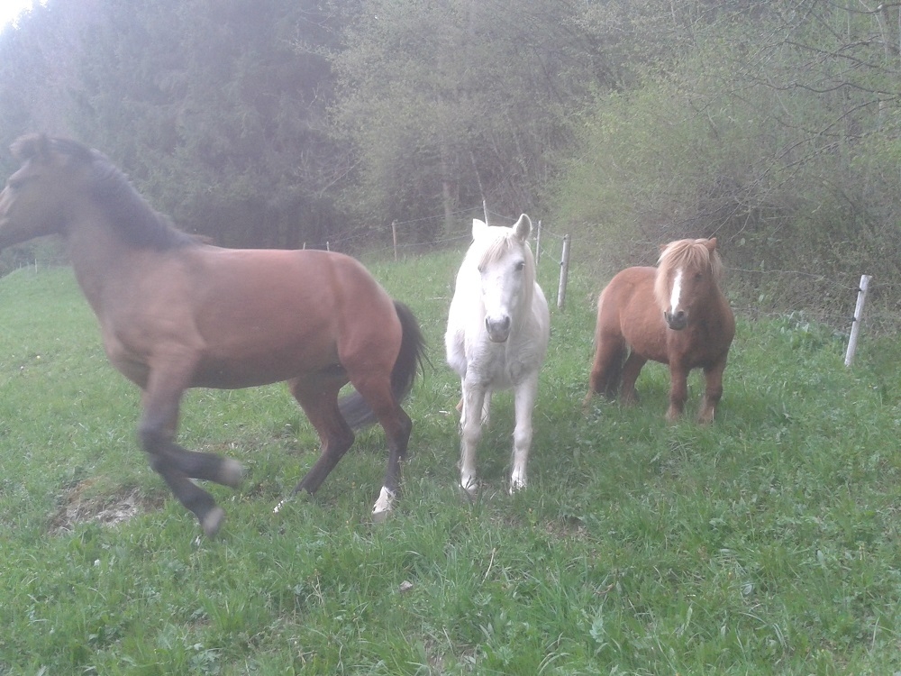 | Dire merci | dilou si ![]() Bon la semaine dernière, je voulais les emmontagner le dimanche parce que les prés en bas étaient râpées. J'ai complémenté au foin 5 jours. Mais là... Bon j'ai le panier pour Caline au besoin ![]() Et pour les écarts de température c'est vraiment la galère ! Daïka qui était en pension (plus dans la plaine et à l'abris) cette hiver grelottait mais les poneys qui ont encore bien du poil d'hiver aussi... Message édité le 29/05/16 à 10:32 |