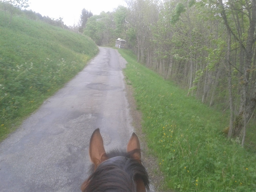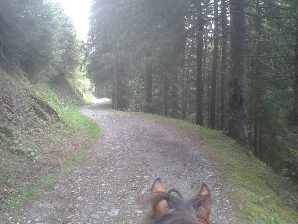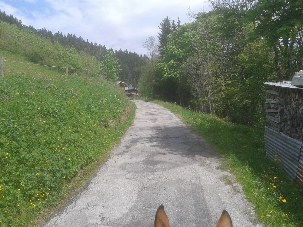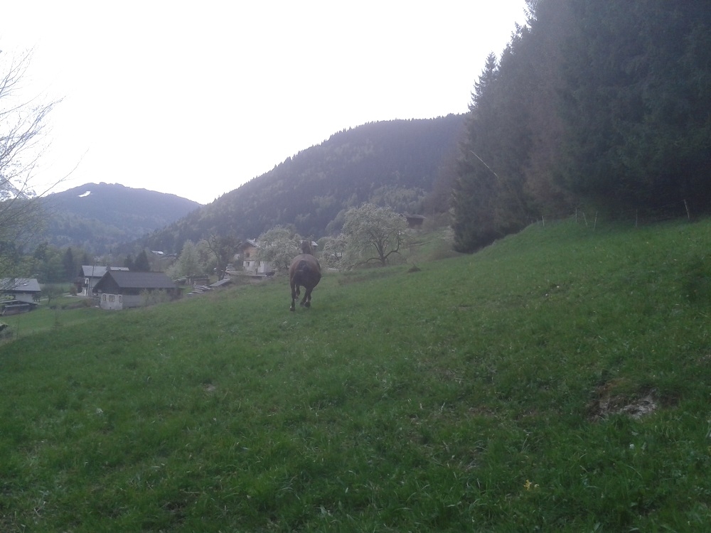 | Dire merci | Ensuite l'apéro s'éternisant un peu et l'alpage n'étant plus qu'à 10 minutes à pieds, je me suis dit qu'il vallait mieux qu'on se rentre. Parce que si j'allais jusqu'à l'alpage, connaissant bien les agriculteurs,... je sentais l'embuscade ![]() Donc on est repartie par un chemin de notre côté. Et une fois à la maison et Daïka de retour au pré, je suis remontée histoire de pouvoir faire la fête ![]() Les vaches sont pour l'instant juste en dessous (on les distingue à gauche des toits) puis monteront par le chemin qui est en face de nous ![]() ![]() Notre jolie chemin (l'un des seuls près de la maison...). On a fait une jolie galopade c'était trop bon. Daïka était à fond ![]() ![]() ![]() Là ça descend raide et vu comment c'était gras je suis descendue ![]() ![]() |