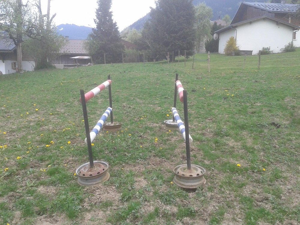 | Dire merci | On a aussi travaillé au sol : Passage de bâche, reculer sur la bâche, passage étroit, déplacement latéral avec des barres au sol au milieu du cheval qu'il ne faut pas dépasser pendant le déplacement... Daïka comprend très bien ! ![]() ![]() |