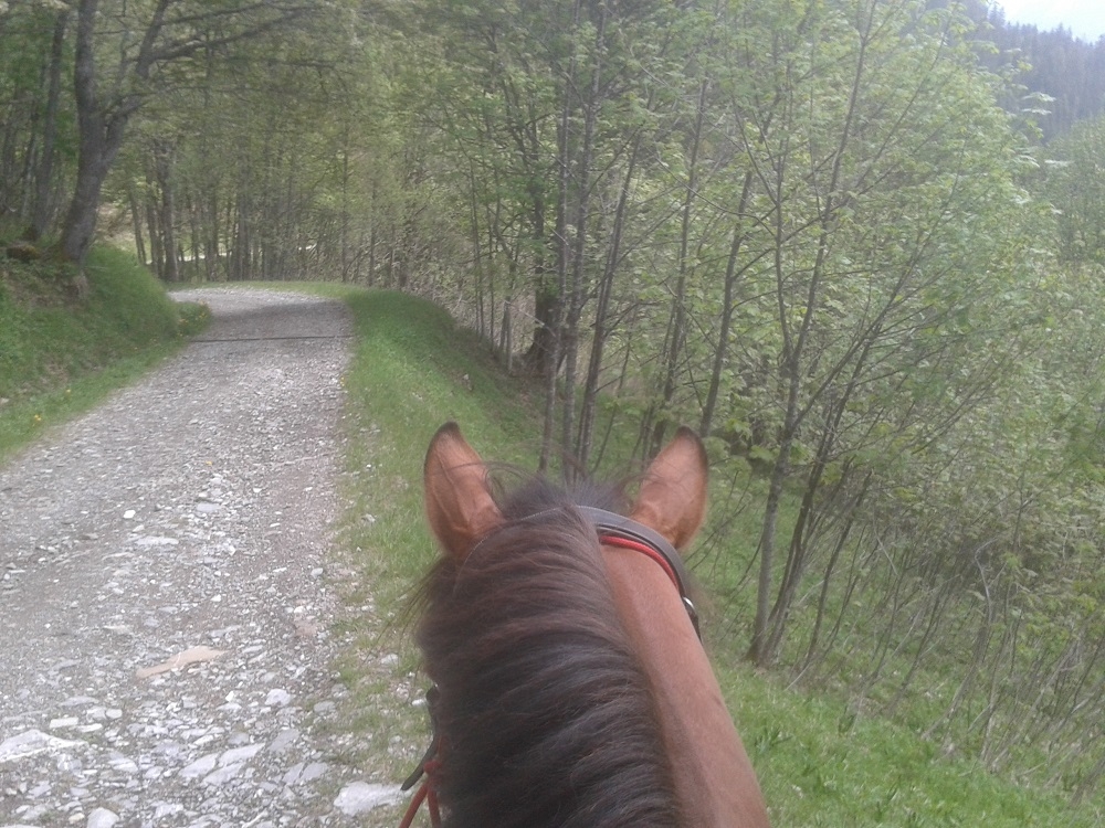 | Dire merci | Je me mets à cheval et on rejoint la troupe !![]() Ma petite nièce sur la gauche (Tata indigne qui est sur son cheval pendant qu'elle marche )![]() ![]() |