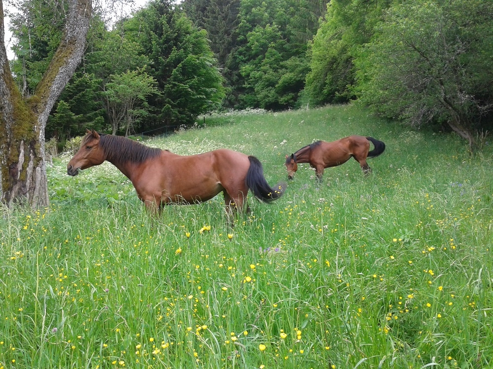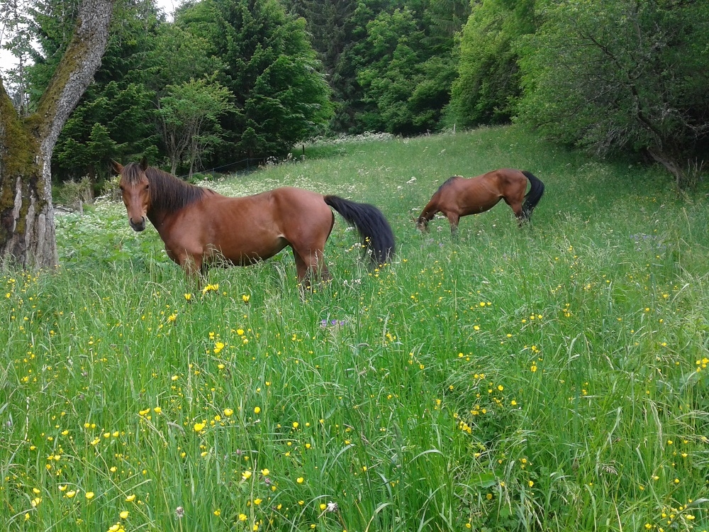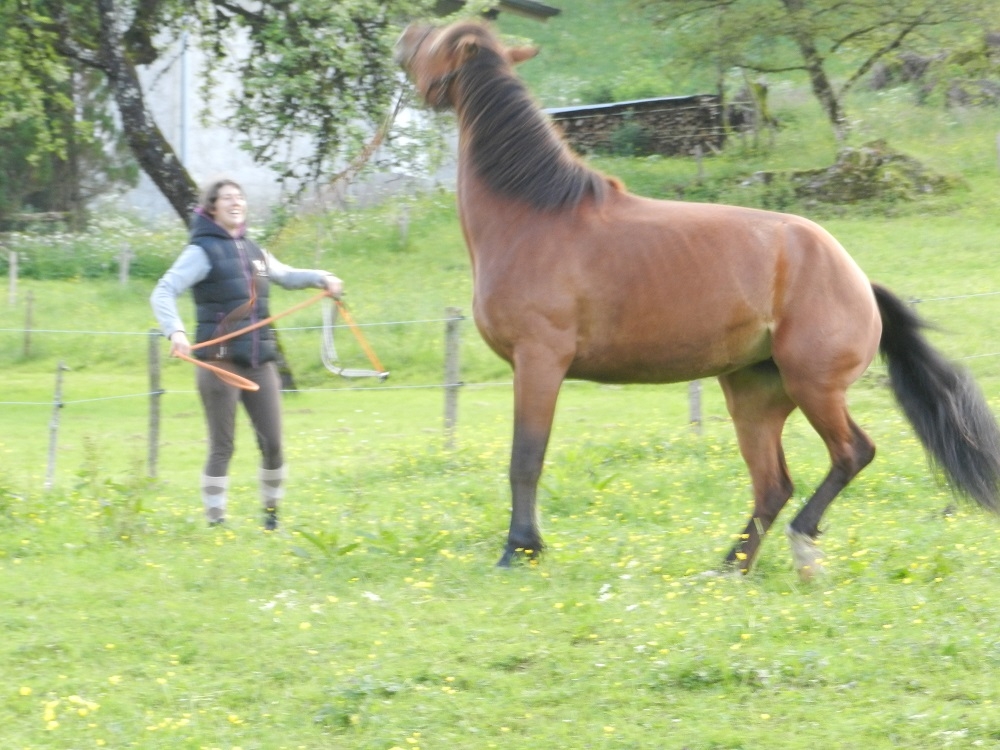 | Dire merci | Hier on a redescendu les juments chez maman parce que ce soir nous avons un cours d'éthologie : J'en profite pour faire monter un peu ma petite nièce. Elle était toute fière ![]() ![]() Caline n'est vraiment pas contente qu'on parte ![]() ![]() Arrivée chez ma maman. Un nouveau parc de quoi remplumer la copine à qui il manque quelques kilos ![]() ![]() Daïka qui nous regarde partir ![]() |