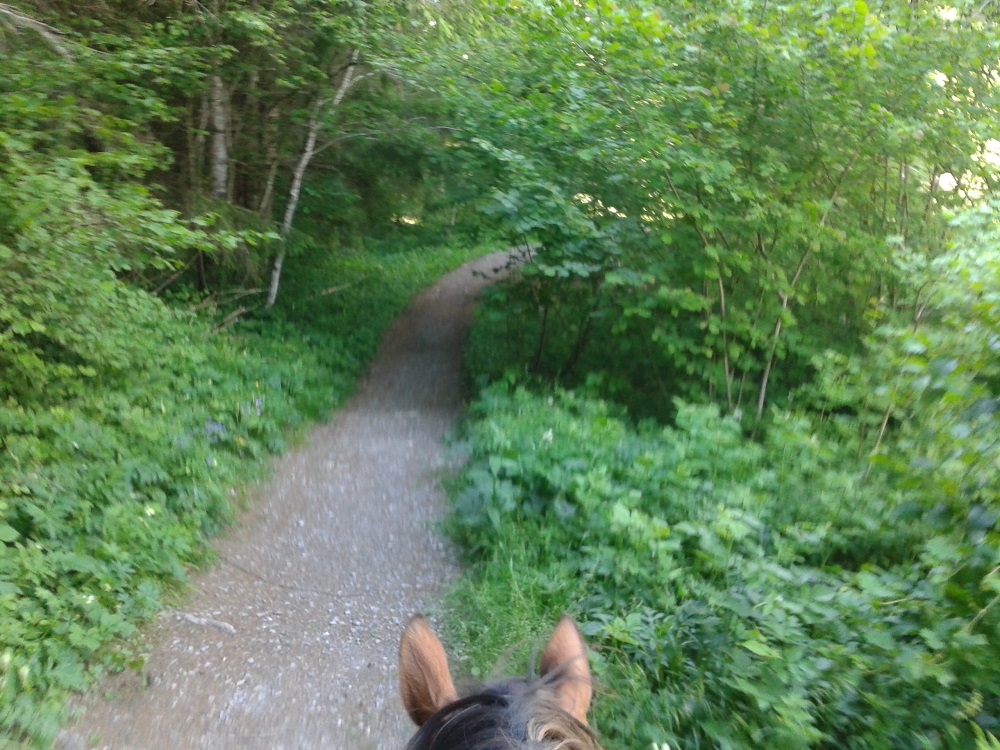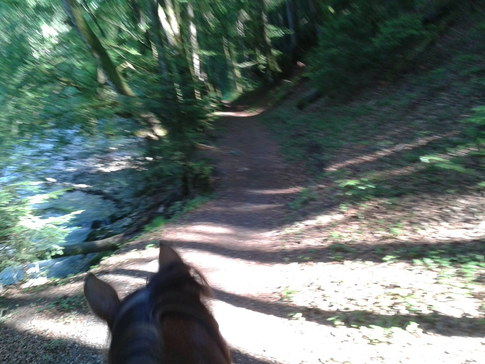 | Dire merci | Le lendemain on s'est fait un bon petit tour (du moins pour nous parce qu'on est loin des sorties de ceux qui font de l’endurance hein irisetquiara39 )Donc 17,2 km et 600m de dénivellé positif tout au pas (juste 2 petites galopades) en 3h20. Il faisait très chaud mais les 3/4 étaient en bord de Dranse donc au frais. Bon la plupart de mes photos sont floues (Daïka allait trop vite )Avec pas mal de passage assez étroit et la rivière juste à côté. Les juments ont été top ! Avec la vue sur le rocher en forme de tête d'éléphant où il y a la via ferrata (photos page 13) ![]() ![]() ![]() Le chemin passe sous le pont et c'est un peu escarpé juste à côté ![]() ![]() ![]() Puis on passe sur le pont ![]() ![]() ![]() On est juste de l'autre côté du rocher en forme de tête d'éléphant ![]() Le retour par le même chemin au bord de l'eau ![]() Et juste avant d'arriver ![]() Message édité le 30/06/17 à 10:41 |