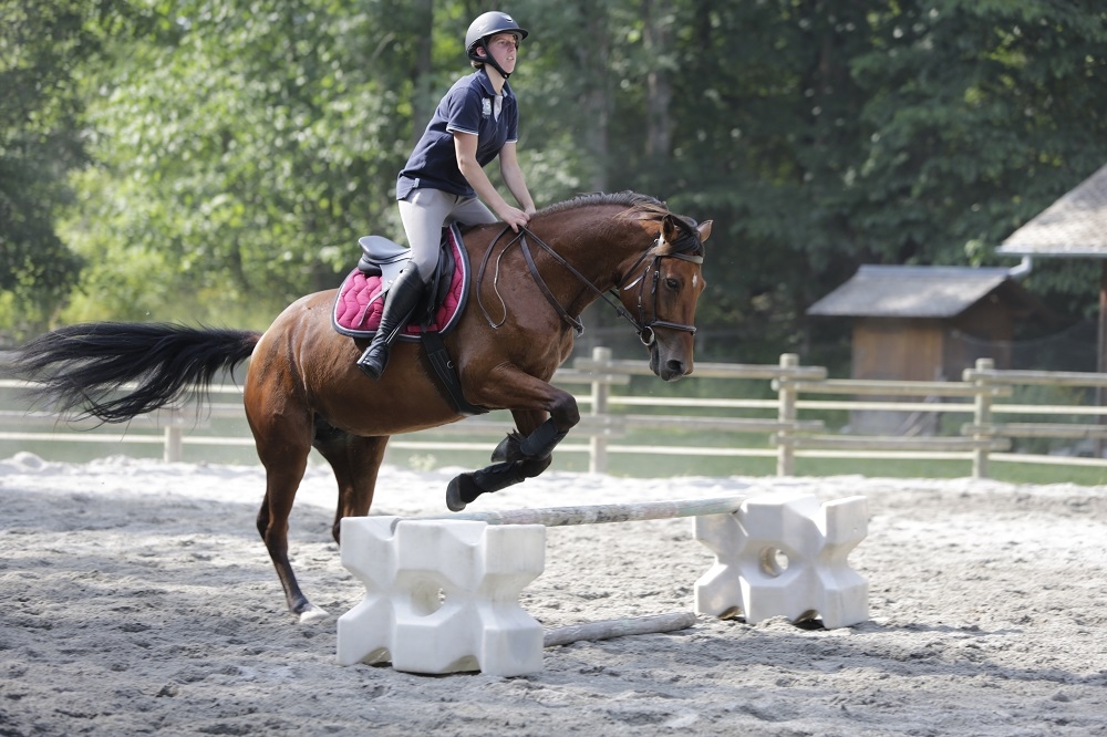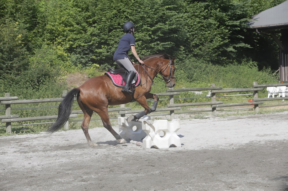 | Dire merci | Là pas de soucis puis au trot ça se complique : quand on était en mené et qu'on arrivait sur les barres Daïka venait se coller à moi donc il fallait que je sois vigilante à ma bulle. Le dernier passage on voit bien qu'elle fait une tentative mais ayant le stick dans la main intérieure je la repousse de suite et c'est mieux |