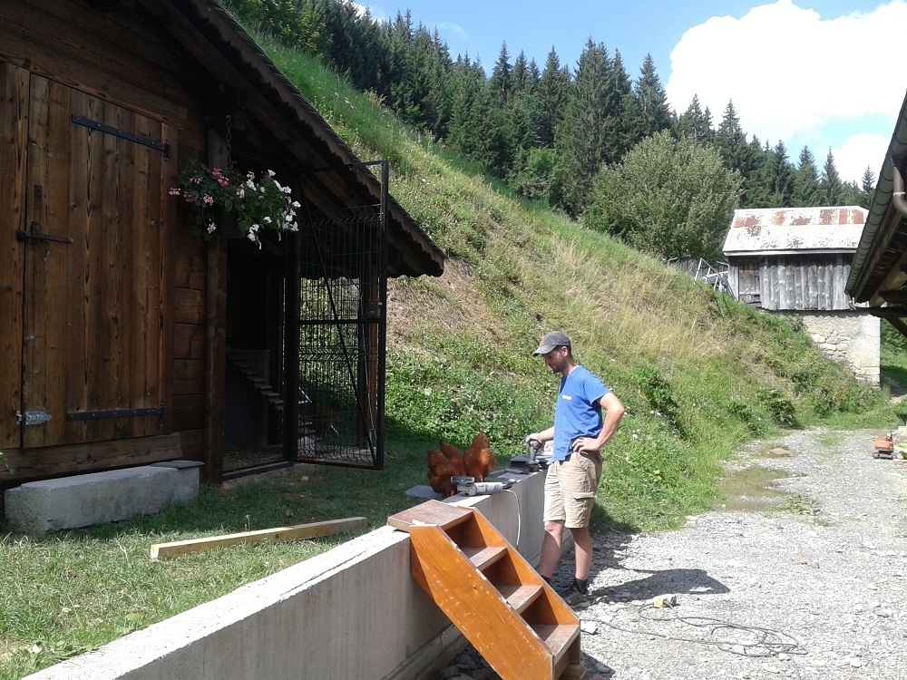 | Dire merci | On a aussi accueilli 4 nouvelles pensionnaires. On voulait en prendre plus tôt dans l'année mais il fallait que z'hom fasse un poulailler où on avait aucun risque que loulou ne pénètre ![]() Bah oui c'est ça d'avoir un chien de chasse on l'a bien habitué aux chats mais les poules s'est pas encore ça mais on y travaille ![]() Pendant que z'hom couvrait le toit Lingo inspecte ![]() ![]() ![]() On les a depuis 15 jours. Elles sont super gentilles. Ca fait une semaine qu'on a tous les jours un oeuf et jours qu'on en a 3 : ![]() Quand le chien n'est pas là les poules danses ![]() |