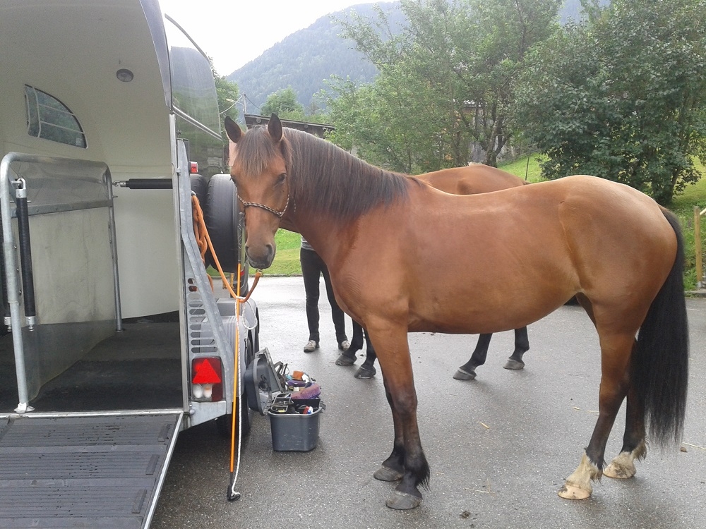 | Dire merci | Entre deux on a aussi retravaillé le van parce que la copine est repartie dans sa nouvelle pension mi-juillet ![]() On a travaillé un premier jour. Les juments étaient assez cool mais on a quand même eu droit chacune à un crottin. La jument de la copine avait un peu plus de mal (mais elle est grande ) et puis elle, elle a un van une place sans pont ou avant elle voyageait en camion. Elle a donc d'abord travaillé en ouvrant le bas-flan. Elle a fini sa séance avec le bas flan à sa place.Pour nous, Daïka monte bien mais a tendance à reculer fortement sans que rien ne lui sois demandé. Je travaille depuis l’extérieur (comme dans la vidéo de préparation au van en page 15) et la laisse rentrer seule. Une fois dedans, c’est en secouant ma longe que je lui demande de ressortir. Et au fur et à mesure je lui demande de rester plus longtemps et je vais lui faire des grattouilles sur les cuisses qu’elle ne soit pas surprise par un truc qui bouge derrière le jour où on ferme la barre de queue. Forcément on avait placé des friandises à l’intérieur. On a refait quelques jours plus tard. On a même pas eu de crottin. Comme c’était nikel pour nous je me suis amusée à enlever le bas flanc et à le proposer de monter dans le van en marche arrière. Eh bien ça ne lui plaisait pas de devoir mettre le pied sur le pont en marche arrière (d'ailleurs j'ai eu droit à un crottin à ce moment là) . Bon on y a été tranquillement et dès que j’ai obtenu un bout de pieds dessus j’ai grandement félicité et laissé là-dessus. Après je lui ai laissé la longe autour de l’encolure le temps que je prenne un truc à 2 m d’elle eh bien elle montait toute seule dans le van voir si il n’y a pas quelque chose à se bouloter ![]() |