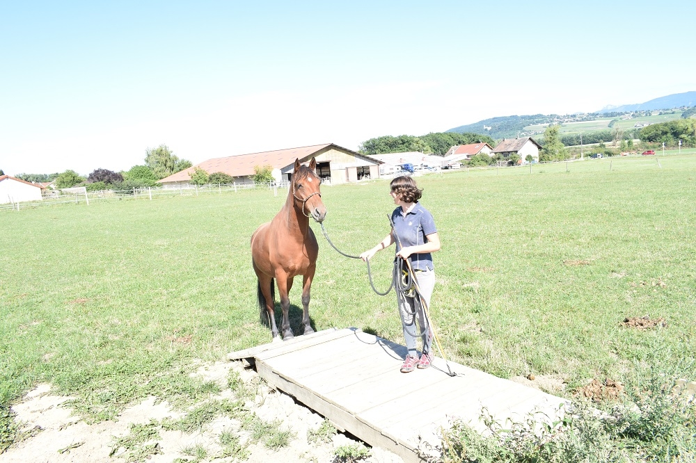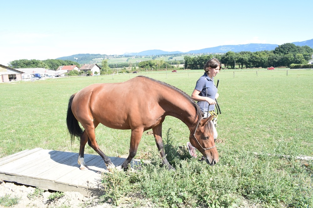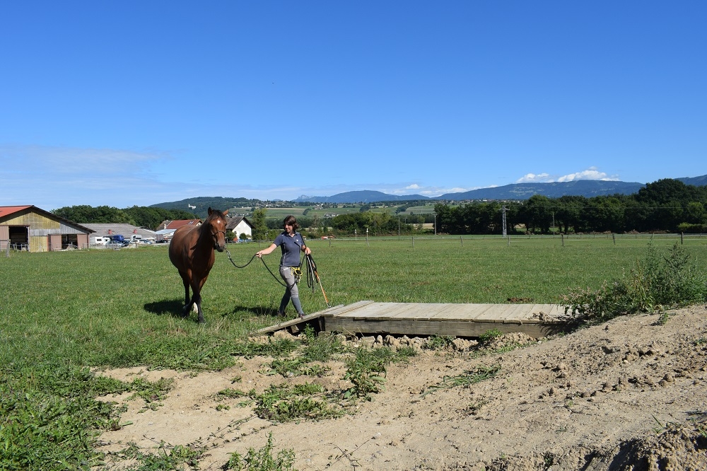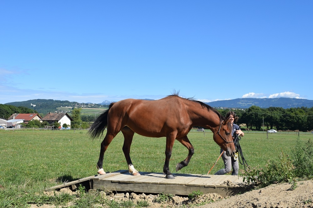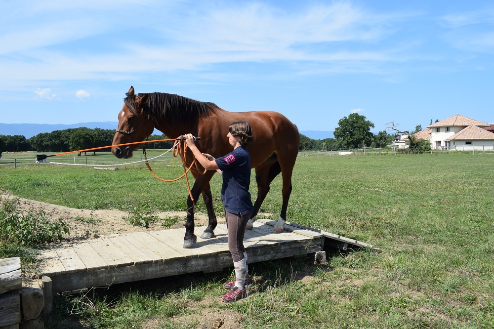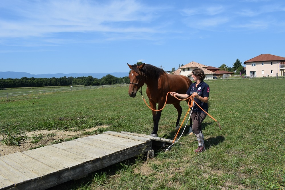 | Dire merci | L'après-midi, toujours à pieds, nous sommes allées bosser dans le terrain de TREC : On commence par la passerelle en main : aucun problème. En arrivant devant elle regarde juste des copains qui sont à l'horizon mais se carre du petit pont de bois. En même temps elle avait bien été désensibiliser avec toutes les passerelles qu'on devait prendre pour aller à nos quand elle était chez moi ![]() ![]() Et puis bon, si en plus il y a de l'herbe de l'autre côté ![]() ![]() La même toujours en mené mais sans que je monte sur la passerelle : ![]() ![]() Un petit tronc toujours en mené : ![]() Puis le petit tronc depuis le cercle ![]() Le petit tronc sur le cercle à l'autre main : ![]() |
