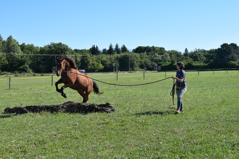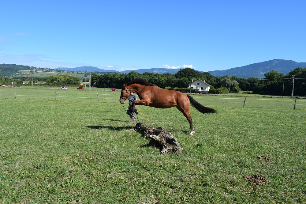 | Dire merci | Mercredi matin, on a de nouveau travaillé en manège. Nous avons repris la désensibilisation. On a fait comme si elle ne connaissait pas le drapeau parce qu'en fait elle s'en fichait ![]() ![]() On a refait plein d'exo sur les déplacements latéraux : avec les antérieurs dans un cercle, déplacement des postérieurs ; puis de même mais avec les postérieurs dans le cercle ; on a d'ailleurs plus de mal sur cet exo. Puis sur une barre, puis le long du pare botte à distance. Bref encore bien enrichissant. L'après-midi, nous avions un autre couple qui nous a rejoint. Nous sommes retourné sur le terrain de TREC : De nouveau la passerelle. D'abord on est passé normalement. Ensuite on est passé en s'arrêtant dessus. Puis on est passé en s'arrêtant puis en reculant jusqu'à redescendre : les sabots dans le nez Demande du reculé ![]() Retour en bas ![]() Puis on enchaîne le petit tronc et le plus gros tronc à distance ![]() ![]() On refait parce que j'ai un peu anticipé qu'elle accélère entre les deux et donc j'ai fait faire un cercle alors qu'en fait elle est resté bien soft. Donc on recommence en enchaînant cette fois ![]() ![]() Après on passe dans la petite "piscine" qui au départ était vide puis qui a été remplit de bouteille plastique. Ca ne lui fait ni chaud ni froid : Y'aurait pas quelque chose à manger ? ![]() ![]() Puis j'ai pensé à sheytana parce que pendant qu'on était dans le terrain de TREC qui fait partie d'une pension privée n'est-ce pas, je me suis fait pêter la vitre de ma voiture (on voit le parking depuis le terrain et il y avait du monde aux écuries à ce moment là) et voler mon sac à main ainsi que mes mini-chaps que je venais de m'offrir fin juin ![]() ![]() Message édité le 30/08/17 à 15:49 |