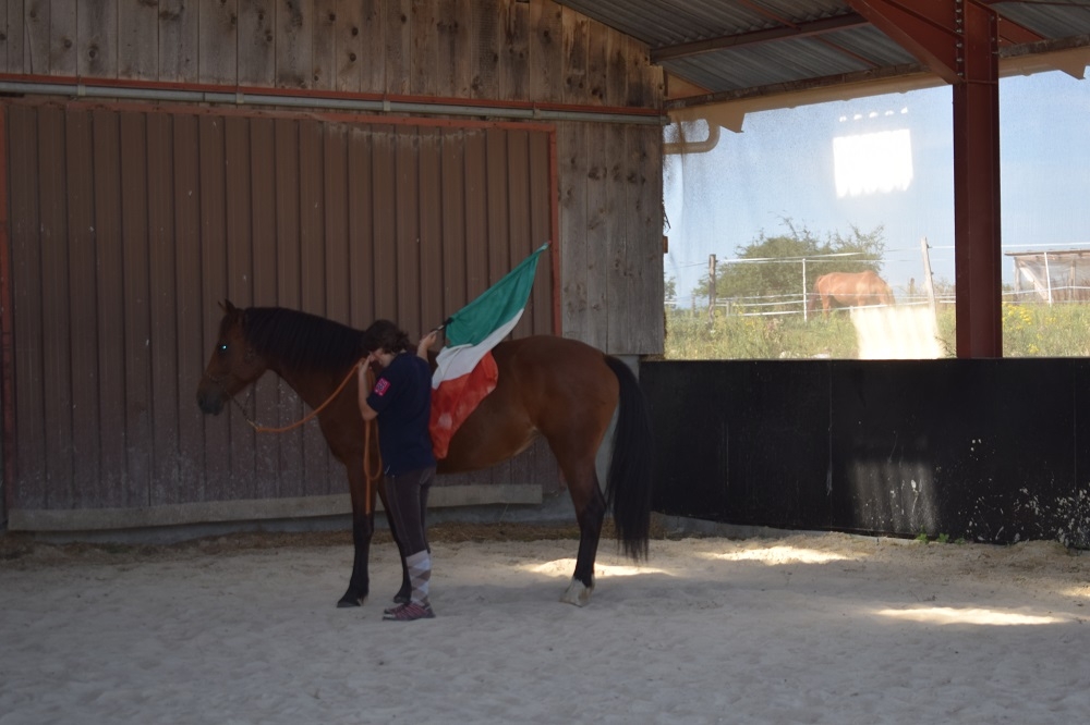 | Dire merci | Je suis en vacances le 8 août. On devrait reprendre un peu le travail surtout que l'avant dernière semaine d'août on part en stage avec ma prof d'étho. On devrait faire du travail à pieds, du travail sur les obstacles de trec, de la rando,... bref ça devrait être une bonne semaine ![]() |