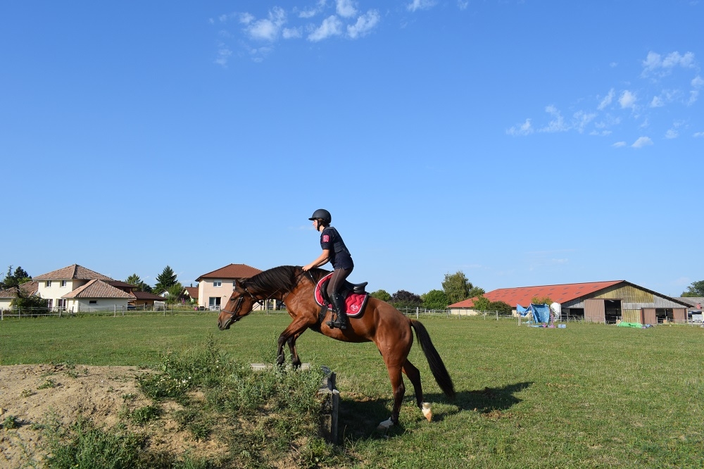 | Dire merci | Ensuite le prof nous un installé des barres au sol ![]() Et il nous a fait travailler sur la croix de Saint André. On a fait plusieurs fois au trot. Il y a encore du travail pour avoir de belles voltes mais il y avait de l’idée ! ![]() Puis il a mis les barres au sol sur le cercle de 20 m à l’entrée de la carrière On a travaillé sur ce dispositif au galop. Après plusieurs passage, il a laissé des barres au sol en A et X et installé des cavalettis à place des deux autres barres au sol Ce sont des exercices très connus mais je les aime bien. C'était une très bonne séance pour nous deux ! ![]() Message édité le 28/07/17 à 11:57 |